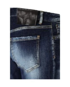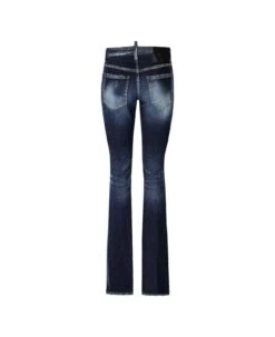 Dsquared2 Twiggy jeans made of dark-wash stretch cotton denim, featuring washed-out effect details and five-pocket design. Medium waist, fitted leg with flared bottom. Zip and button closure decorated with logoed label. Composition: 98% cotton, 2% elastane.