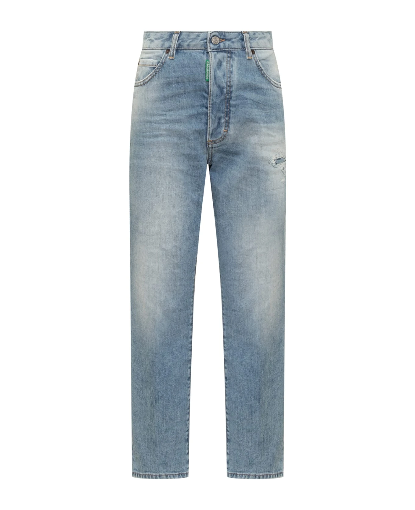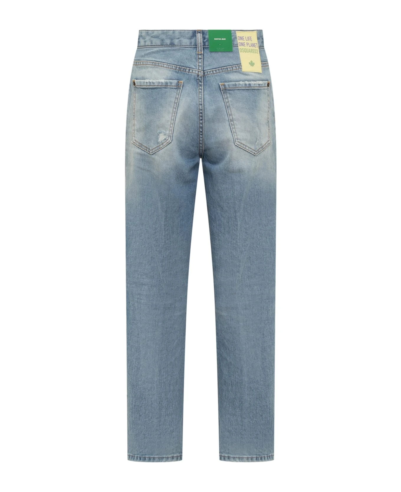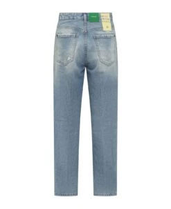 Long denim pants. 5 pockets. Buttons closure. Belt loops. Worn effect. Logo on the back.