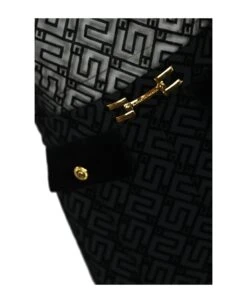 velvet flap with gold colored metal buttons