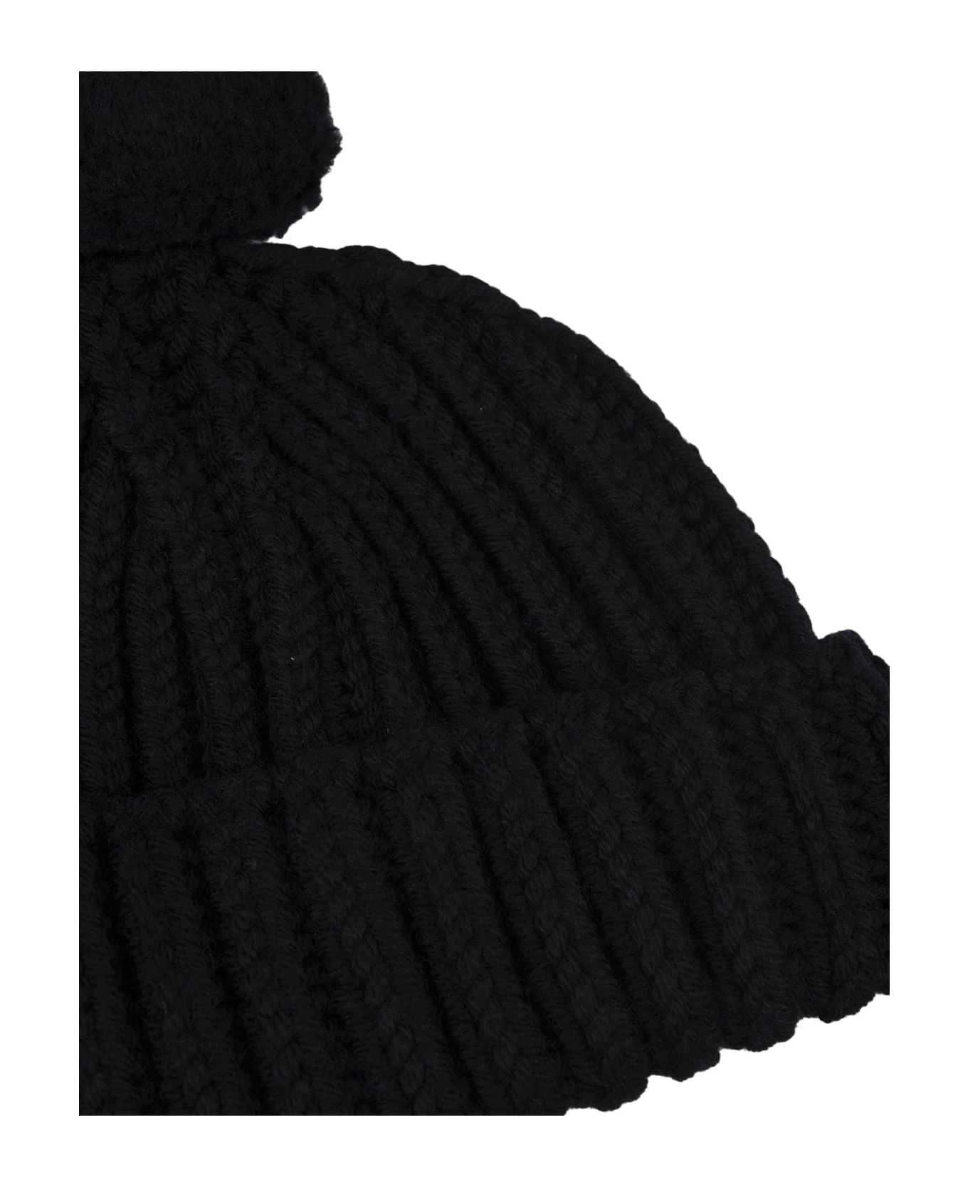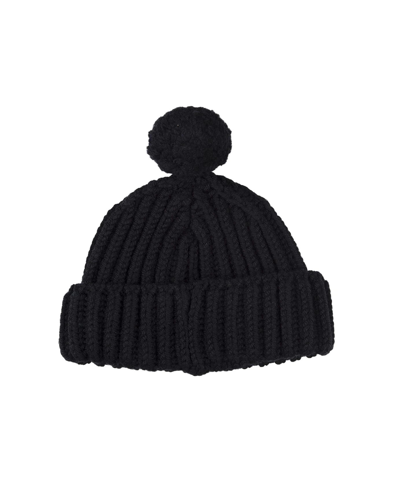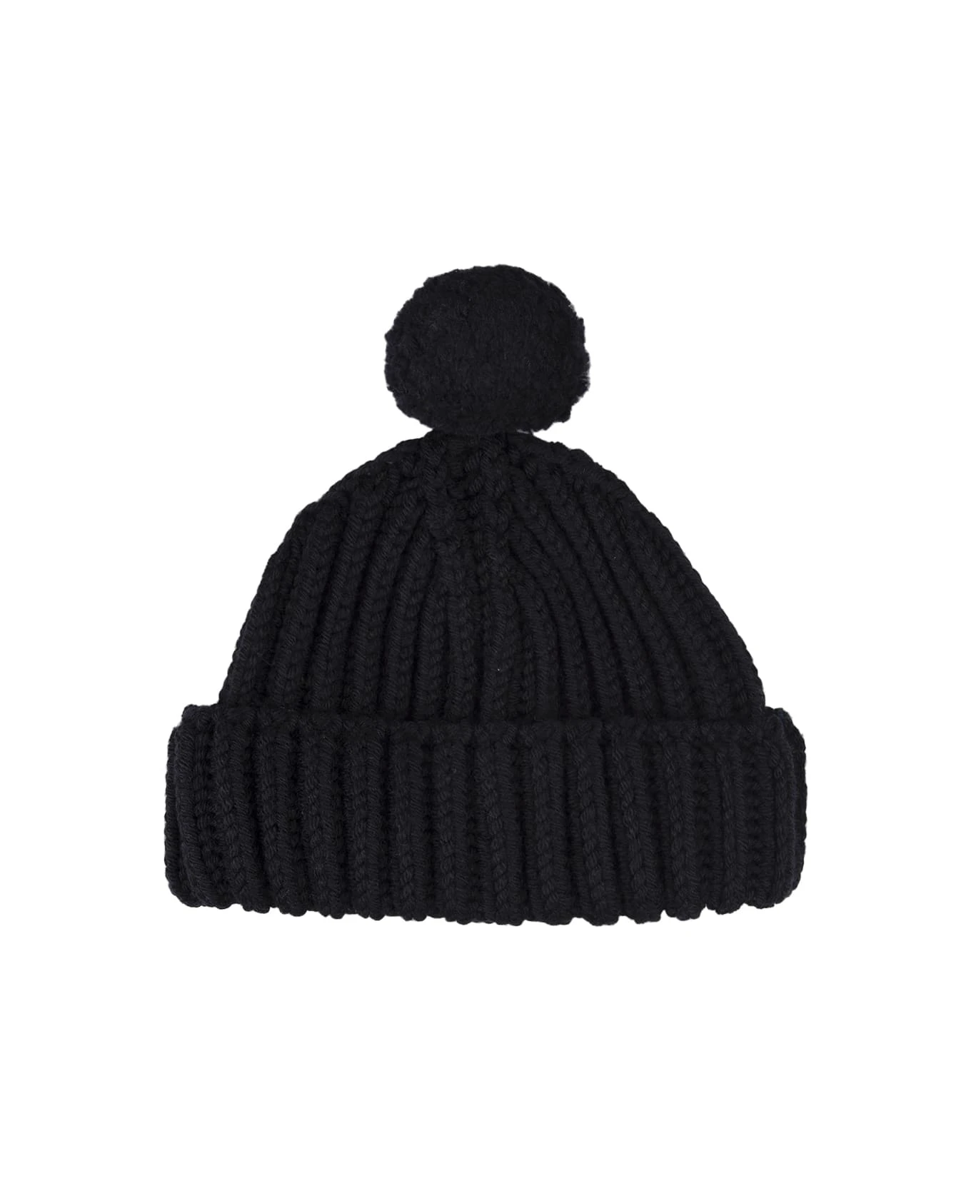 This Ermanno Scervino turn-up beanie is made of knitted black merino wool and embellished with a matching pompon on the top.