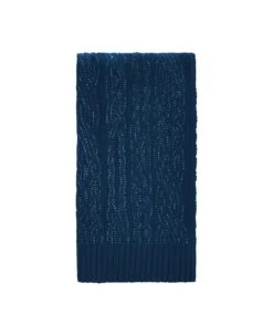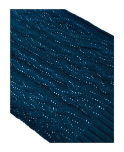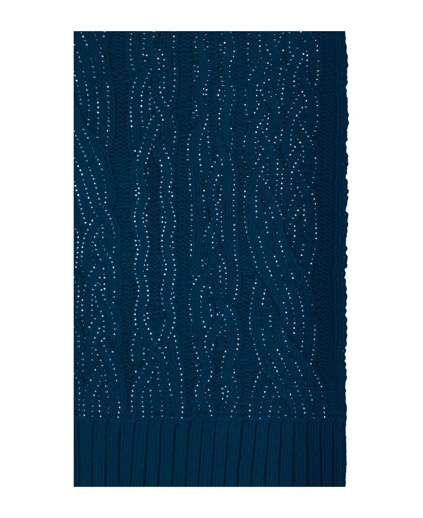 Ermanno Scervino scarf made of blue braided wool with ribbed trim and all-over crystal applications.