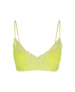 Ermanno Scervino short top made entirely of delicate lime tulle with tonal embroidery. The lingerie-style brassiere features thin silk satin straps, a deep V-neckline and a back hook-and-eye closure. The fit of this garment is regular, we recommend buying your usual size.