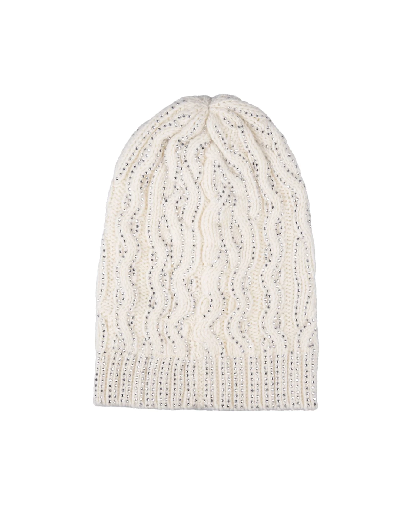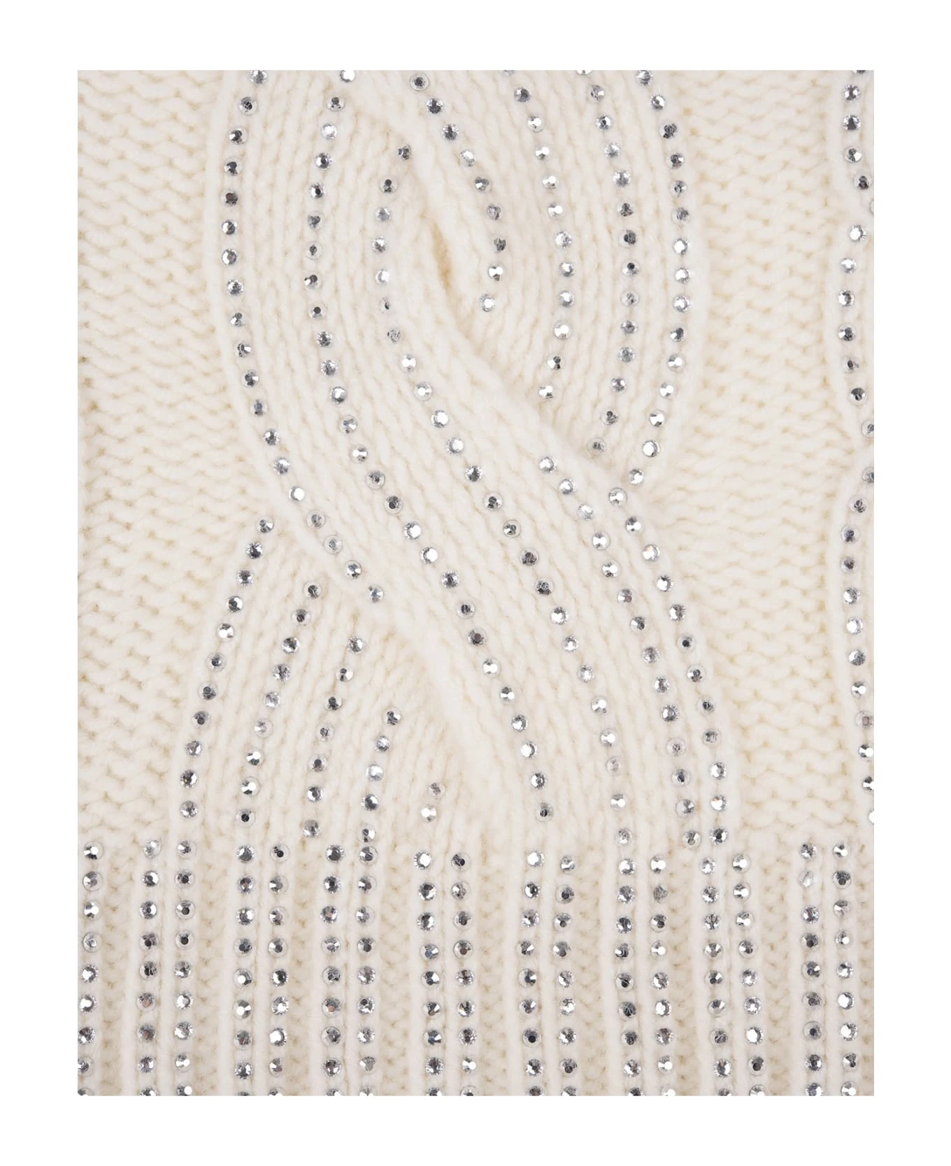 Oversized beanie by Ermanno Scervino made of white braided wool and embellished with all-over crystal applications.