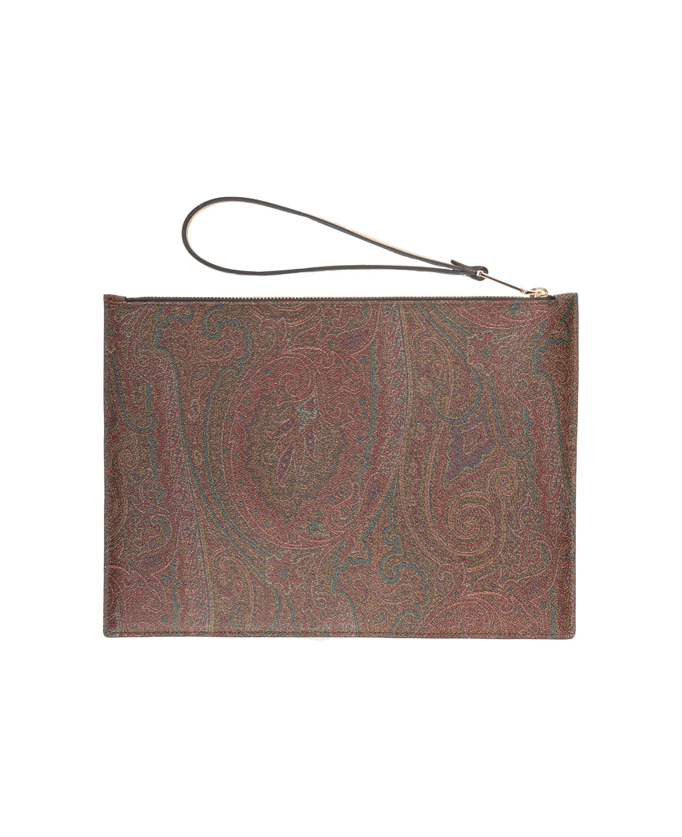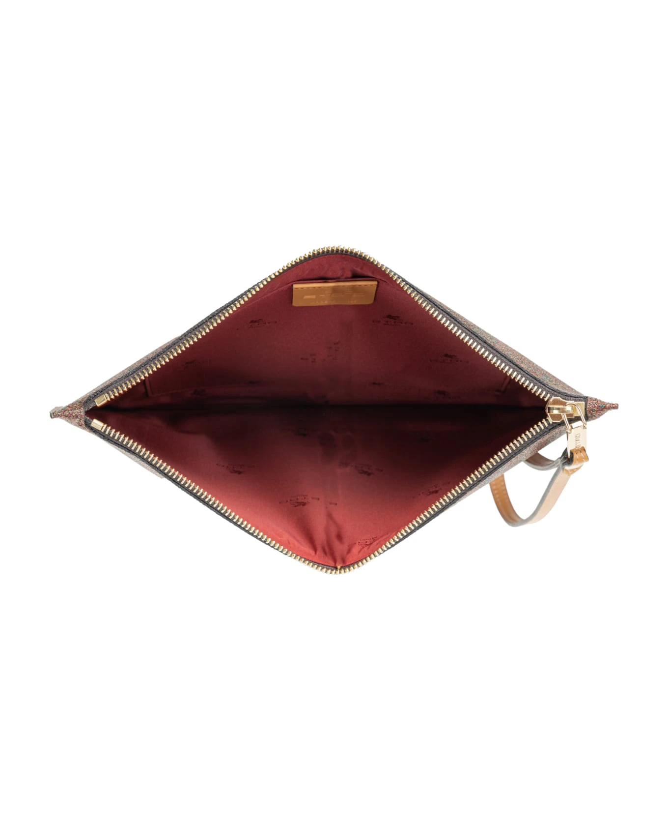 Etro iPad holder made in the iconic Paisley jacquard canvas. Zip closure. Inside pocket. Metallic accessories with golden finish. Strap to wear it on the wrist. Dimensions: 30 x 22cm. External composition: Paisley jacquard cotton fabric coated with matt grain and doubled in canvas. Internal composition: 100% calf leather. Lining composition: 100% nylon. Made in Italy.