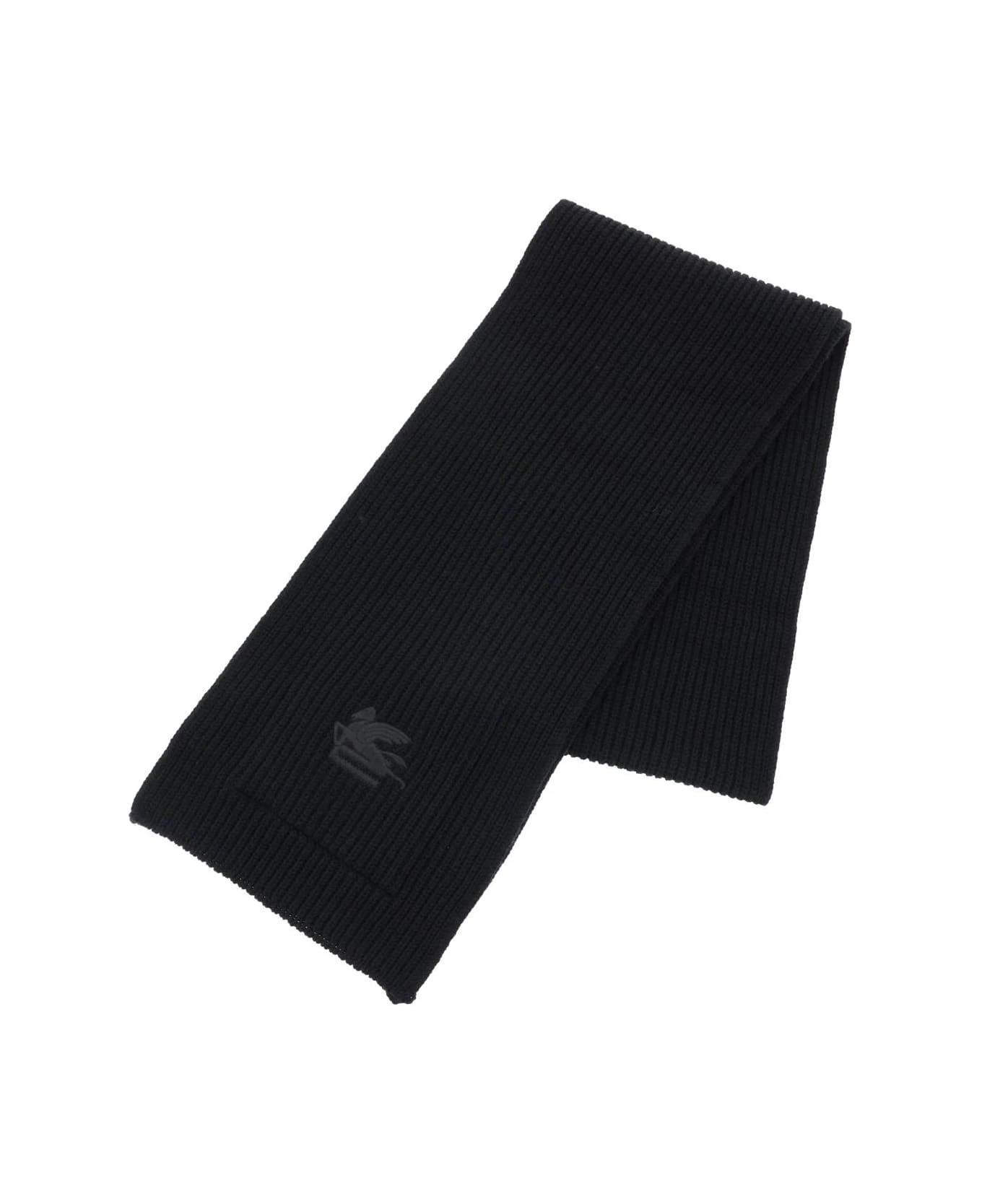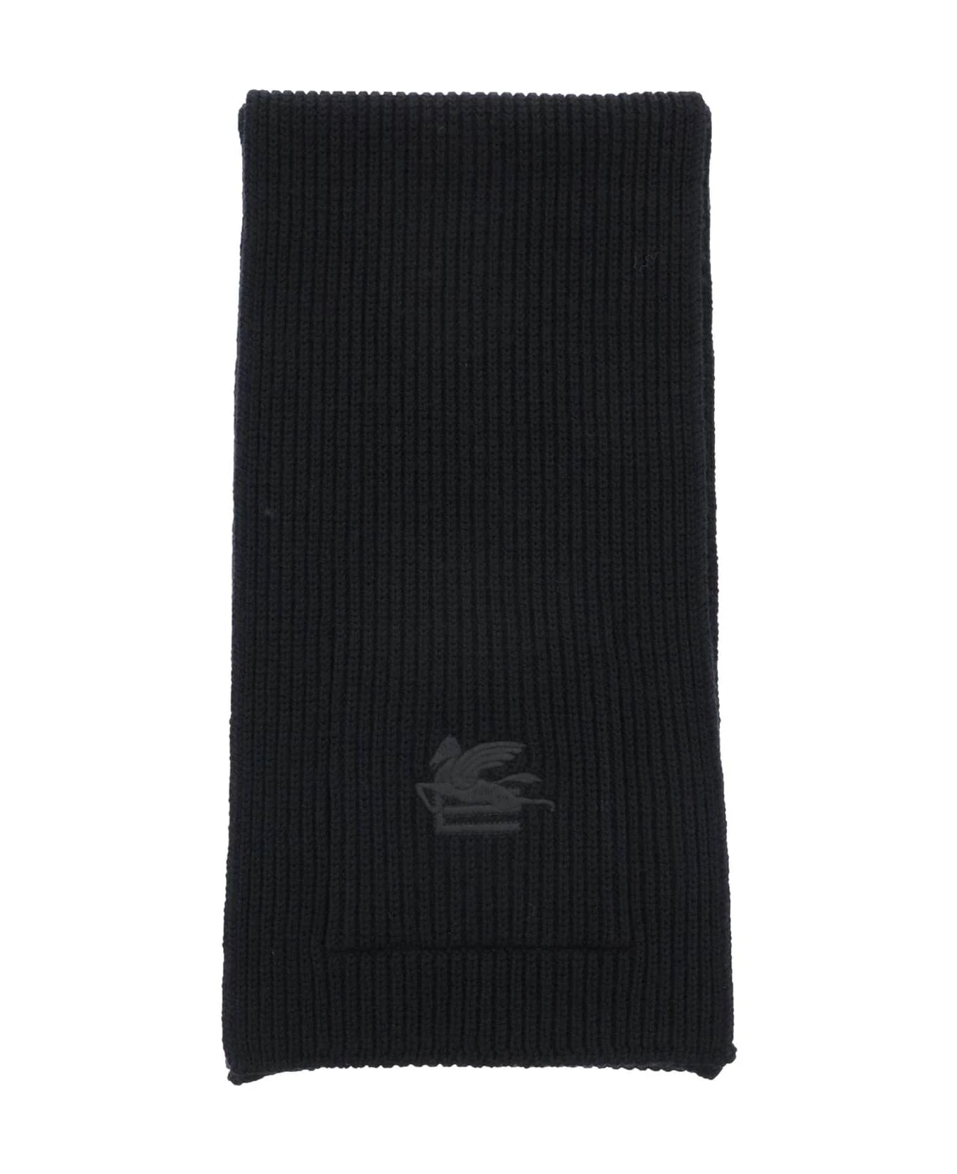 Etro scarf made of pure wool ribbed knit and finished with iconic Pegasus embroidery on the hem.