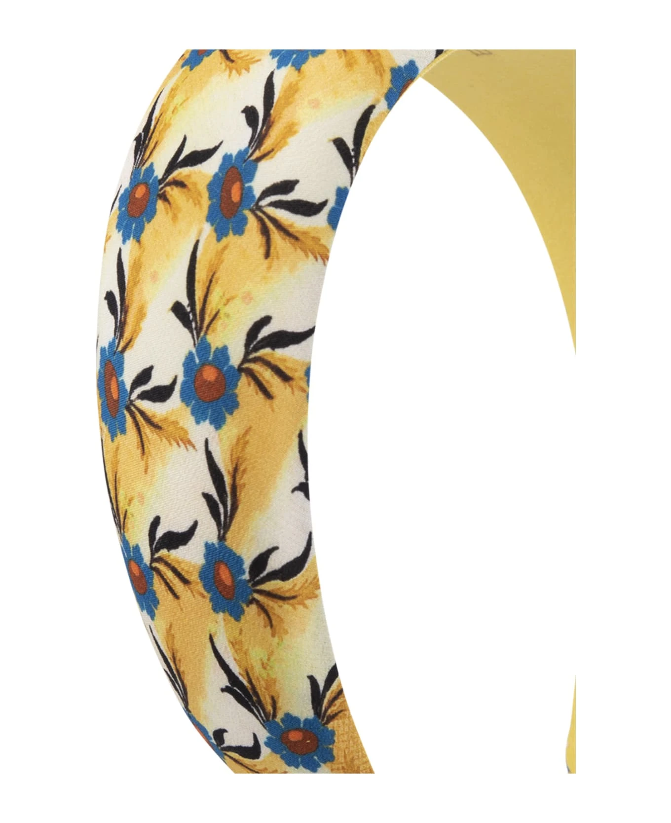 Yellow Etro headband made of silk and decorated with a colorful Floralia print.
