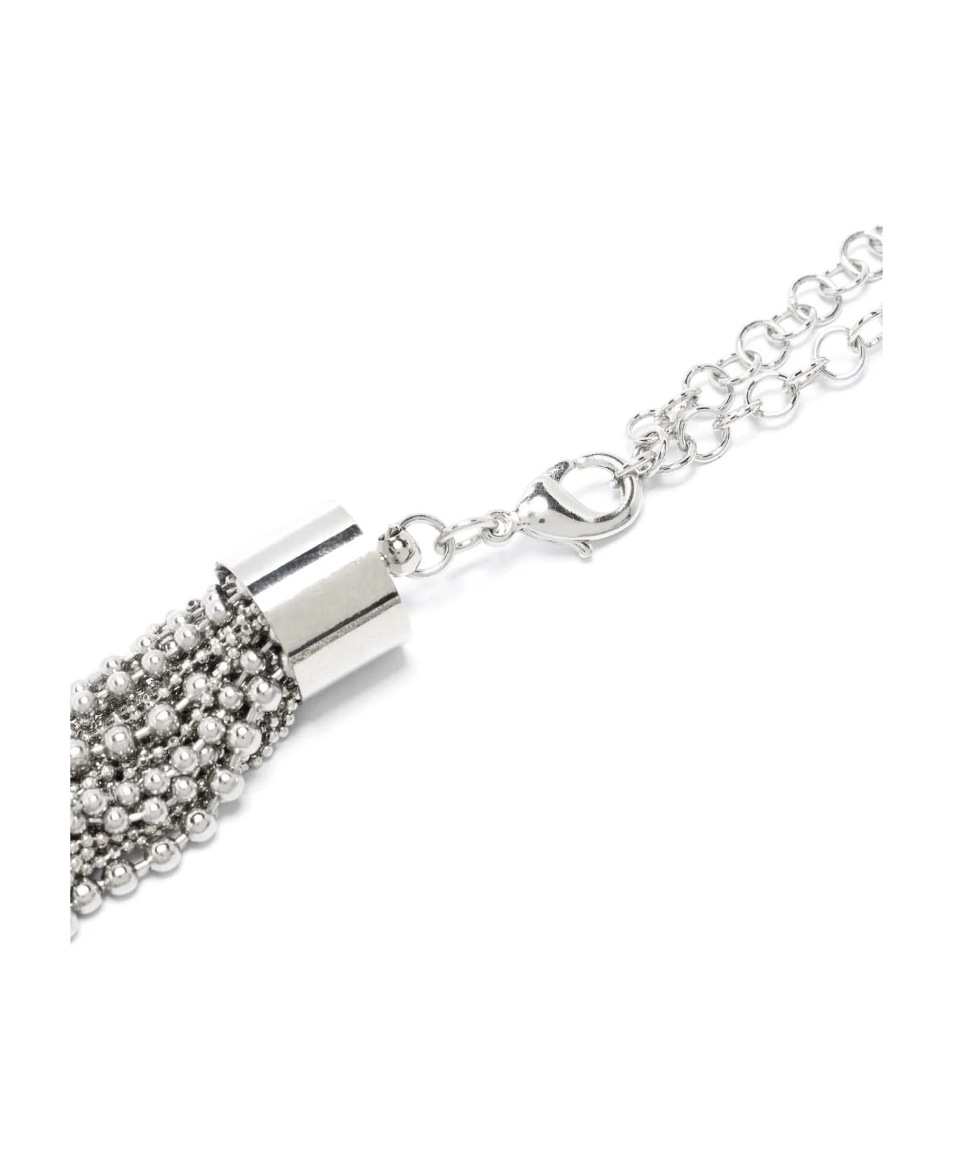 Silver-tone bead-chain necklace, brass, multi-chain design, bead chain, knot detailing, lobster claw fastening, polished finish, length when open 46 cm, width 2. 5 cm