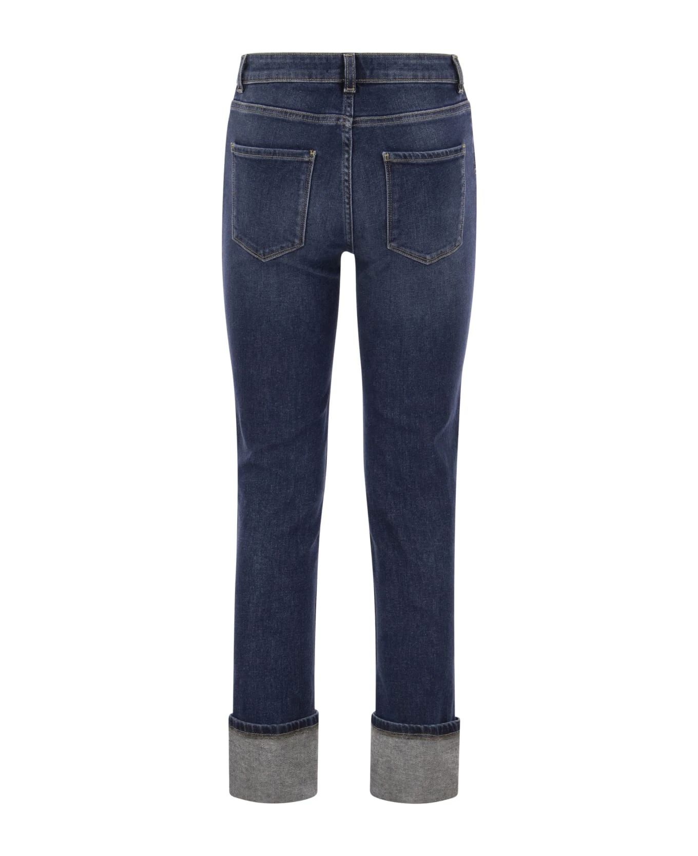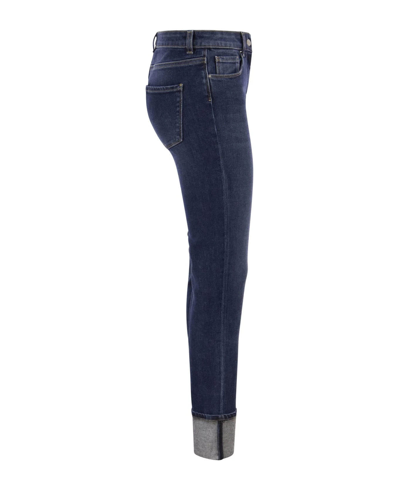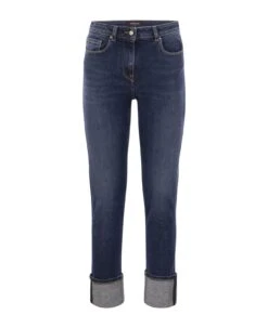 Slim-fit 5-pocket trousers made of stretch denim and characterised by a large turn-up and shiny detail. Versatile and easily combinable, casual par excellence. – Slim fit – Turn-ups at the bottom – Button and zip fastening DESIGNER ID: PADP04F366 H836 VR23