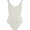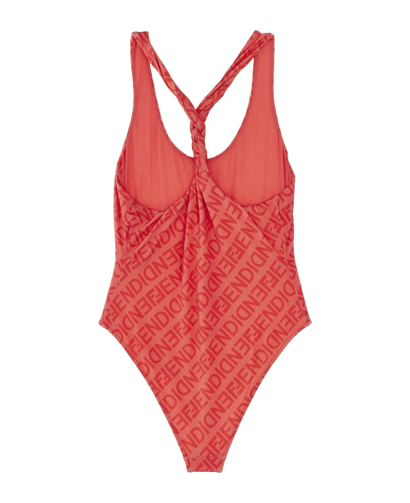 Lycra One-piece Swimsuit With All-over Logo, Shoulder Detail Rolled Up On The Back.