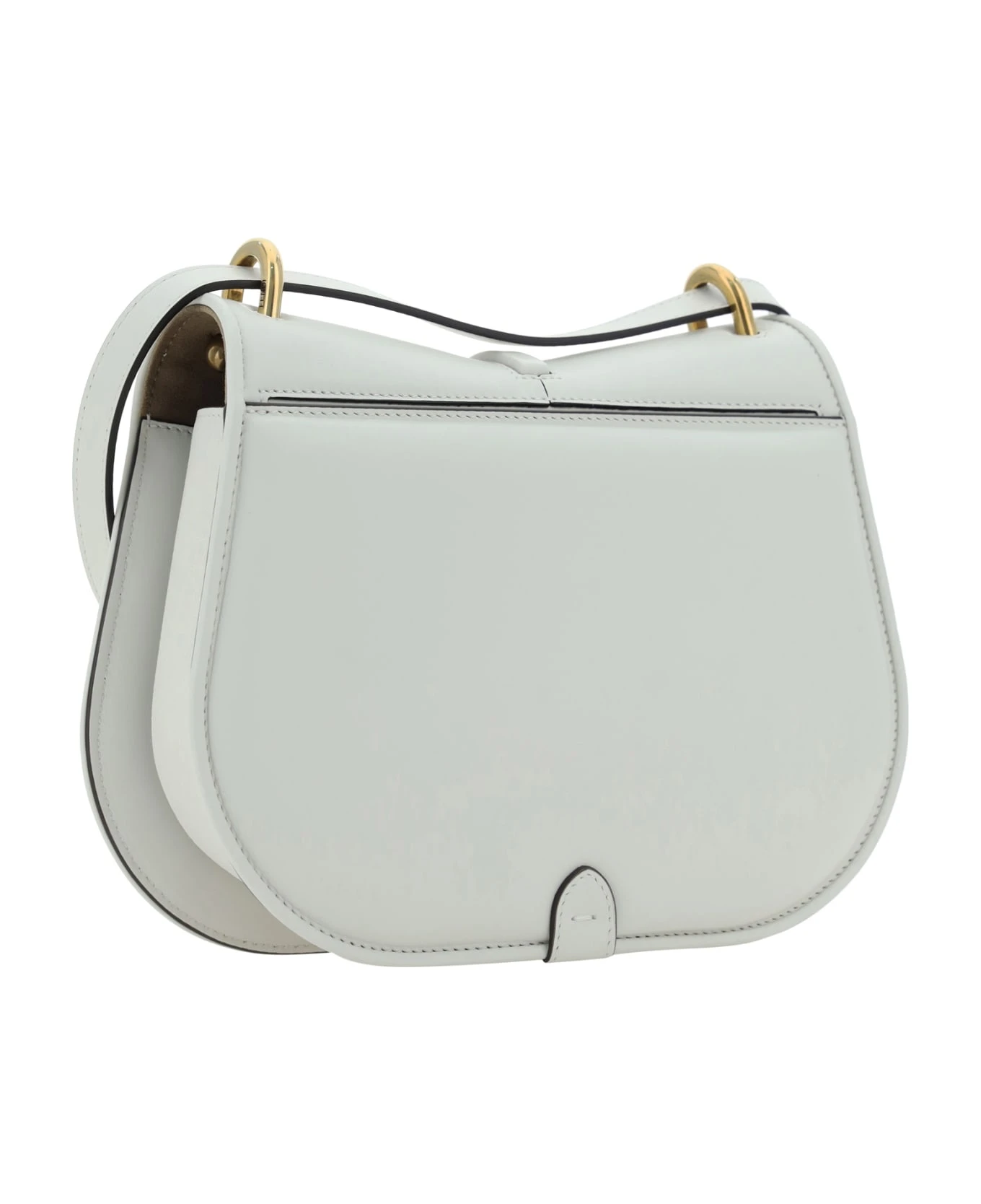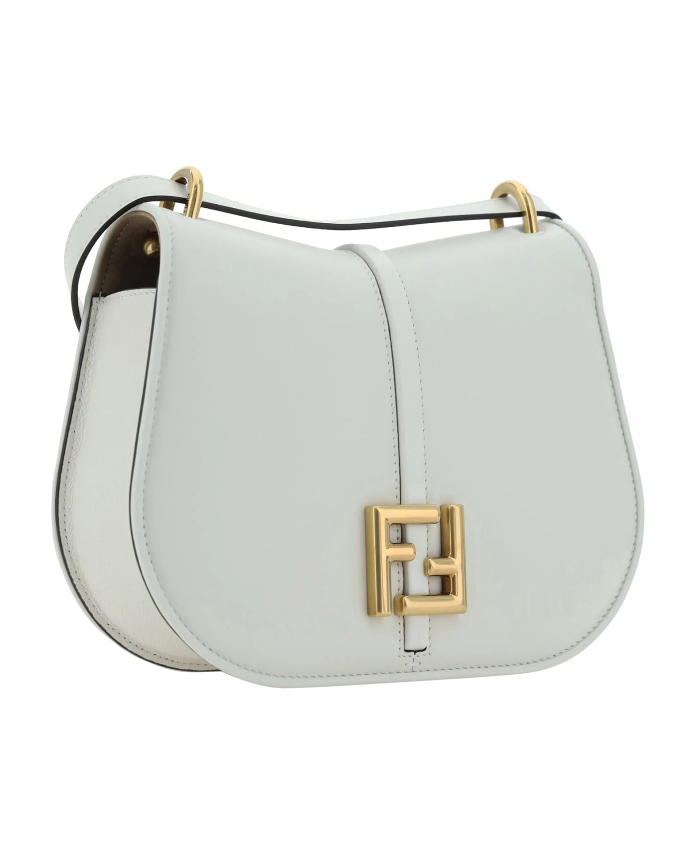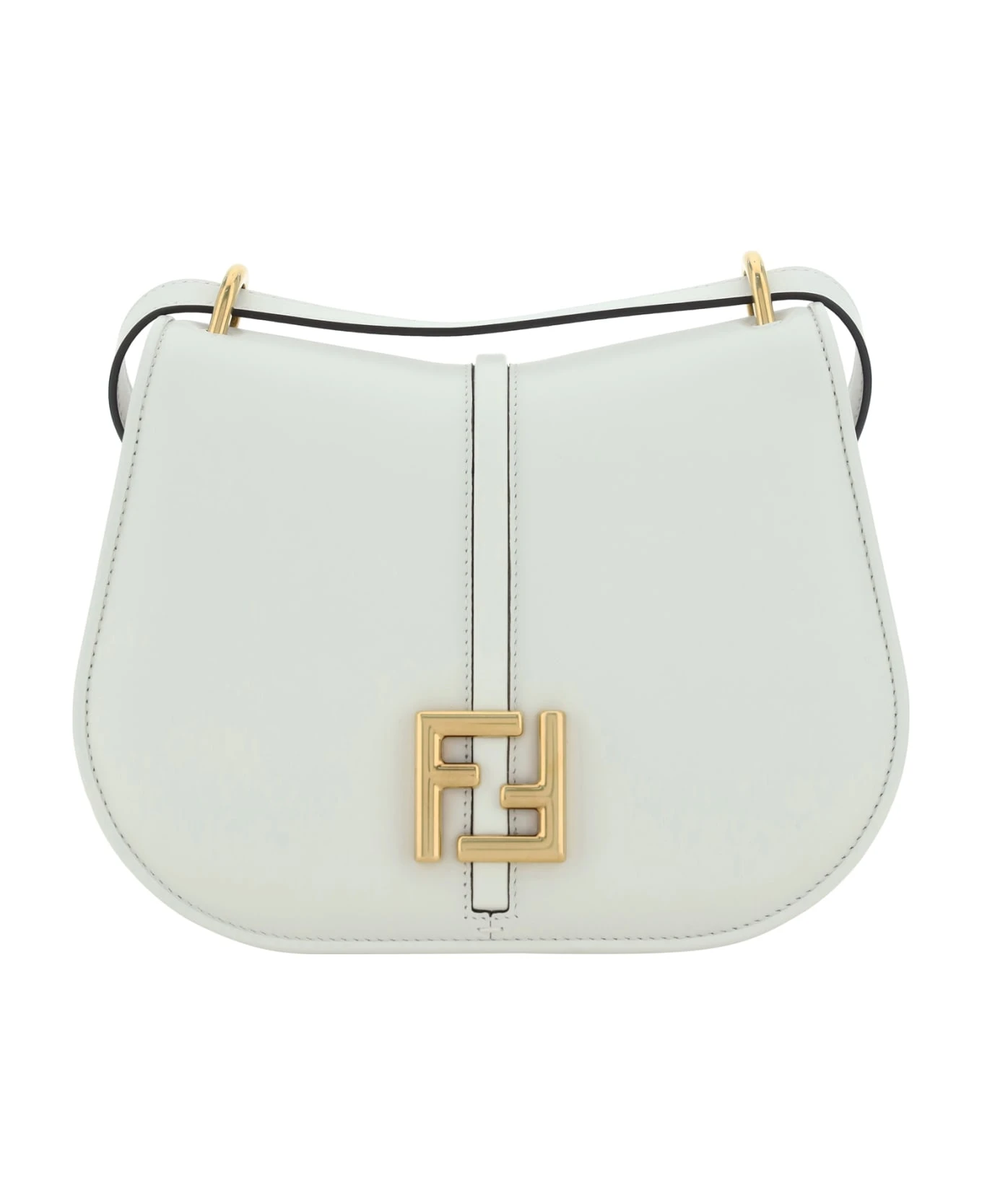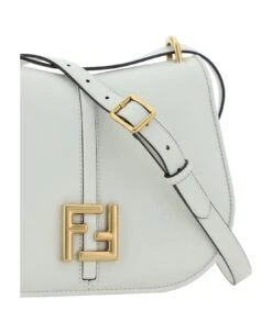 Calfskin c’mon shoulder bag by fendi, adjustable shoulder strap, monochrome smooth leather design, brand’s iconic ff logo plaque applied on front and plated with brass, magnetic flap closure on front, single interior compartment, interior welt pocket.