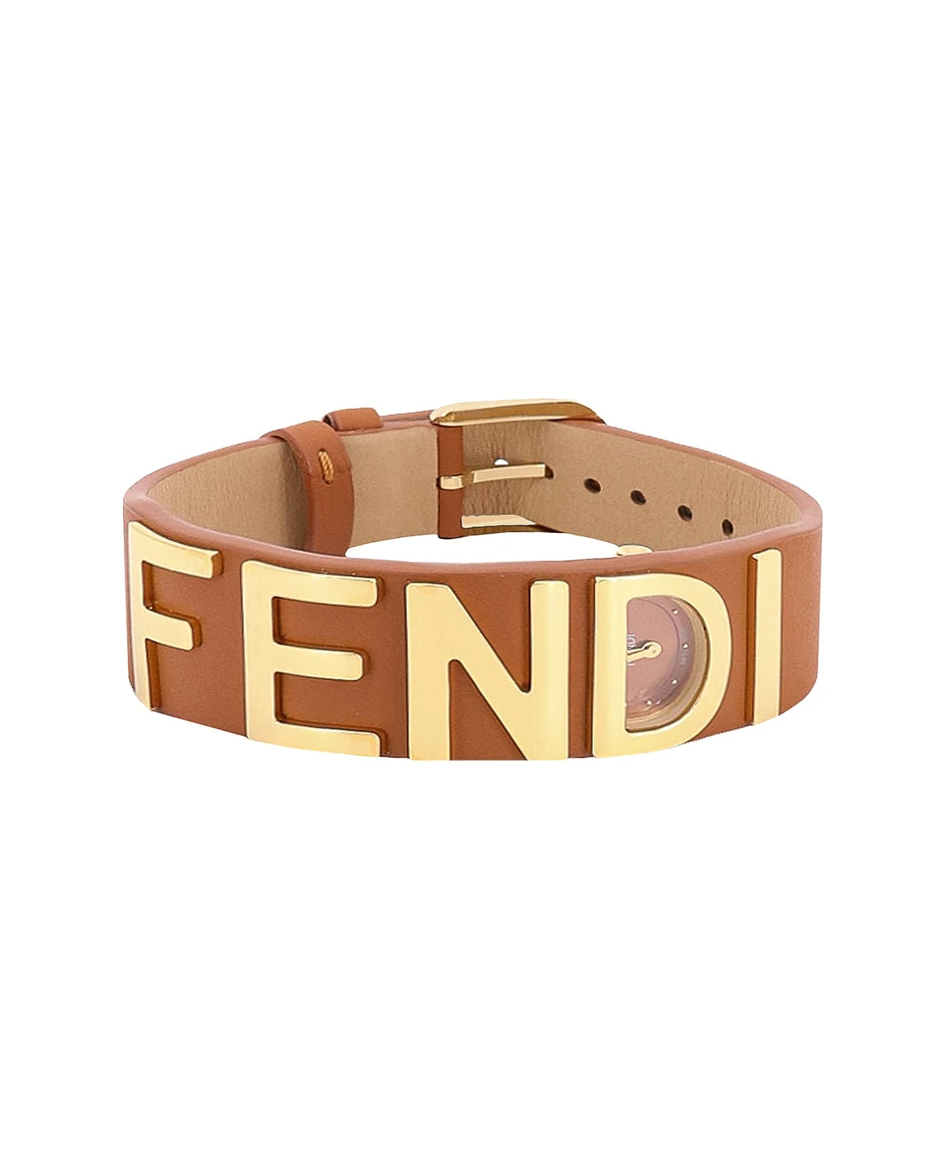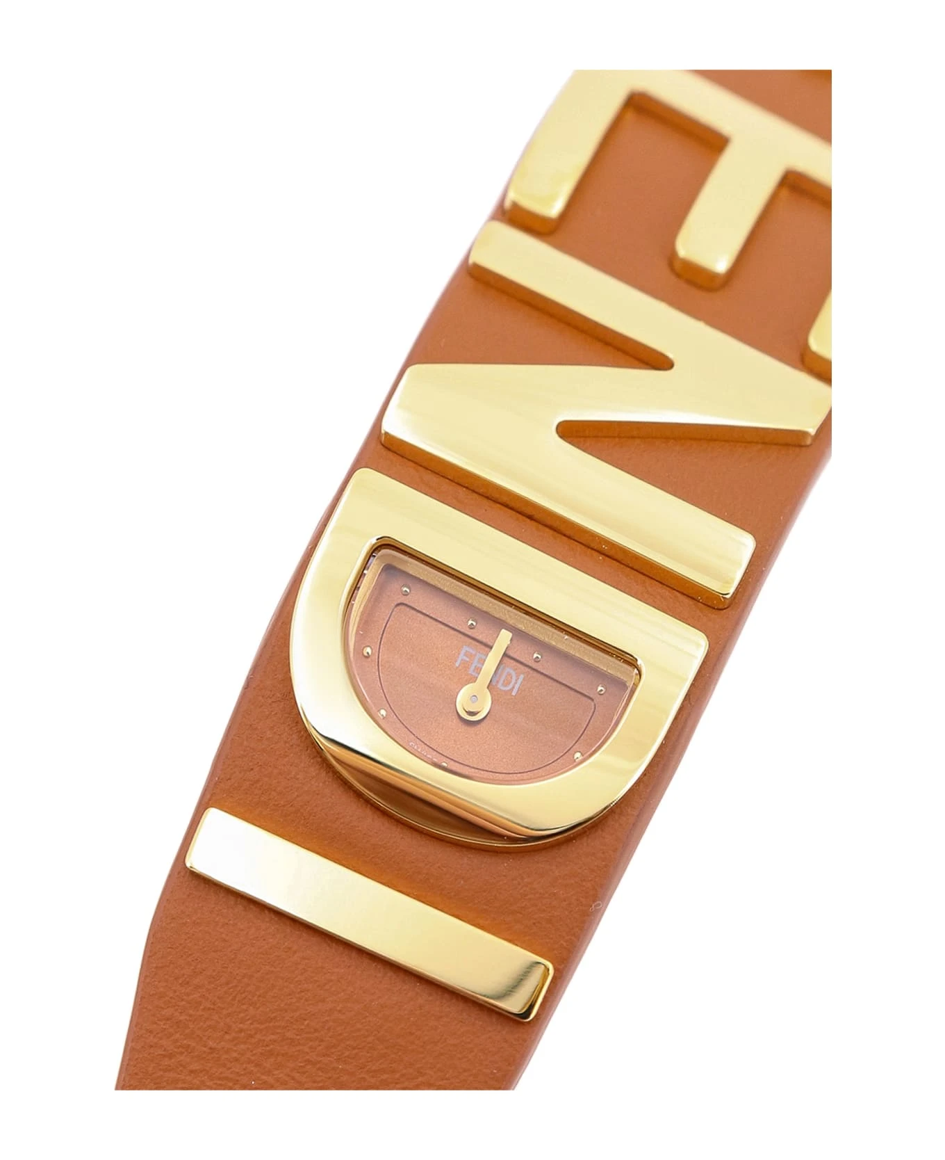 Leather watch with metal logo