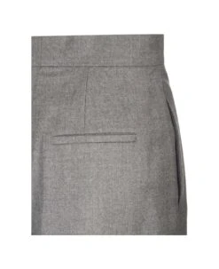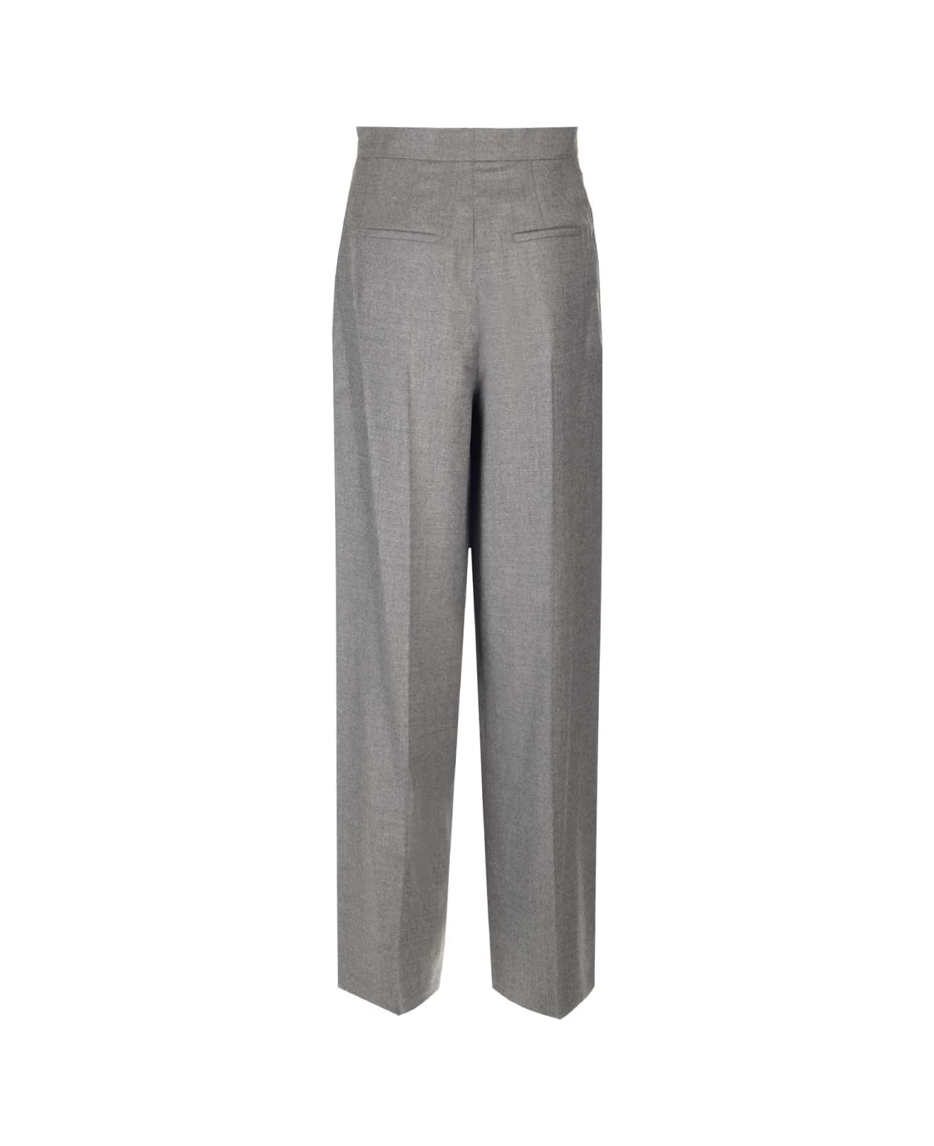 High-waisted tailored trousers from Fendi, in light gray m nge wool flannel, with palazzo line, side pockets and welt pockets on the back, covered zip closure and small internal hook.