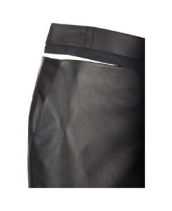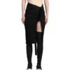 Black midi skirt from Fendi in leather, sheath model characterized by an asymmetrical cut motif at the waist, two side pockets, central vent on the back, side zip closure, belt loops, black ribbon profile with jacquard Fendi logo.