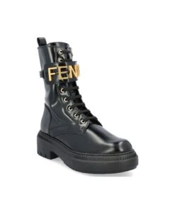 Logo Plaque Lace-Up Biker Boots from Fendi