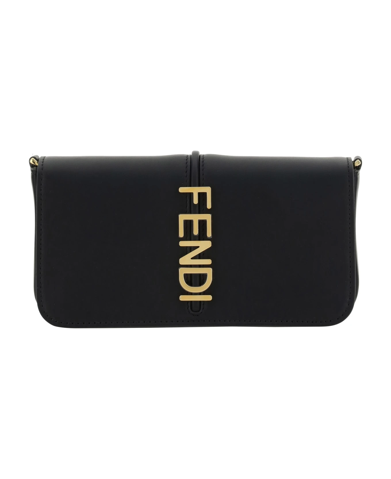 Calfskin Wallet With Chain By Fendi, Embossed Iconic Brand Logo Plaque On Front, Magnetic Flap Closure, Removable Chain Shoulder Strap, Embossed Band On Front And Back, Removable Inner Wallet, Wallet Features Card Slot And Bill Slot.