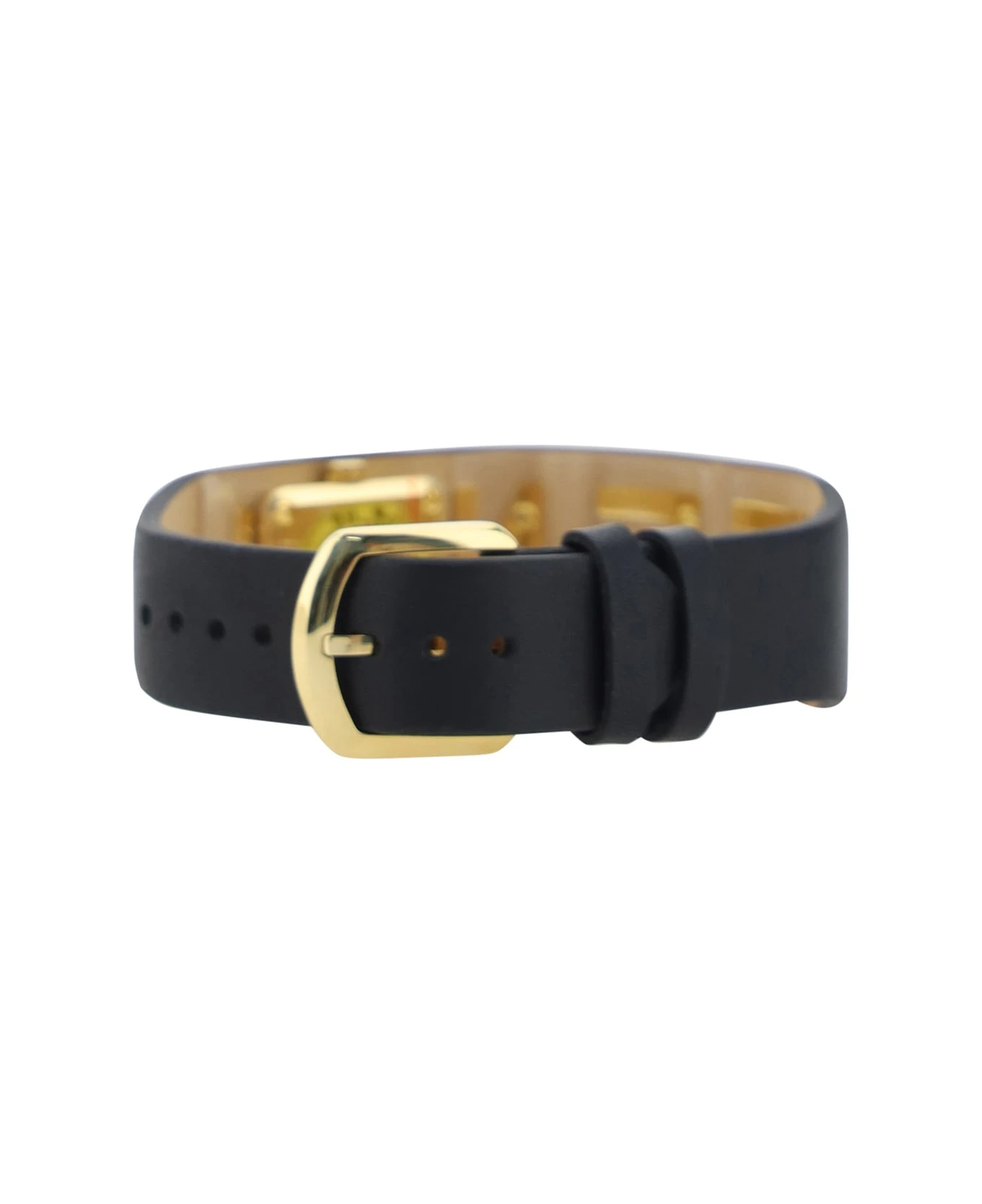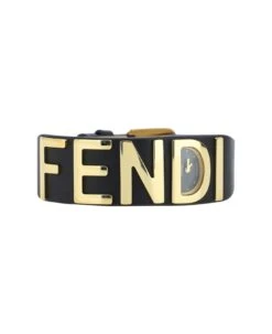 Calfskin spinnaker wrist watch by fendi, iconic gold-plated, three-dimensional brand monogram applied to strap, dial inside monogram lettering, adjustable strap.