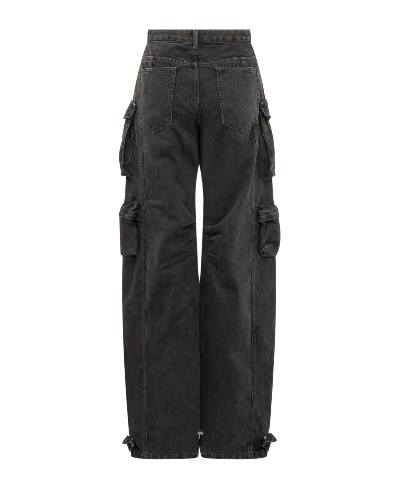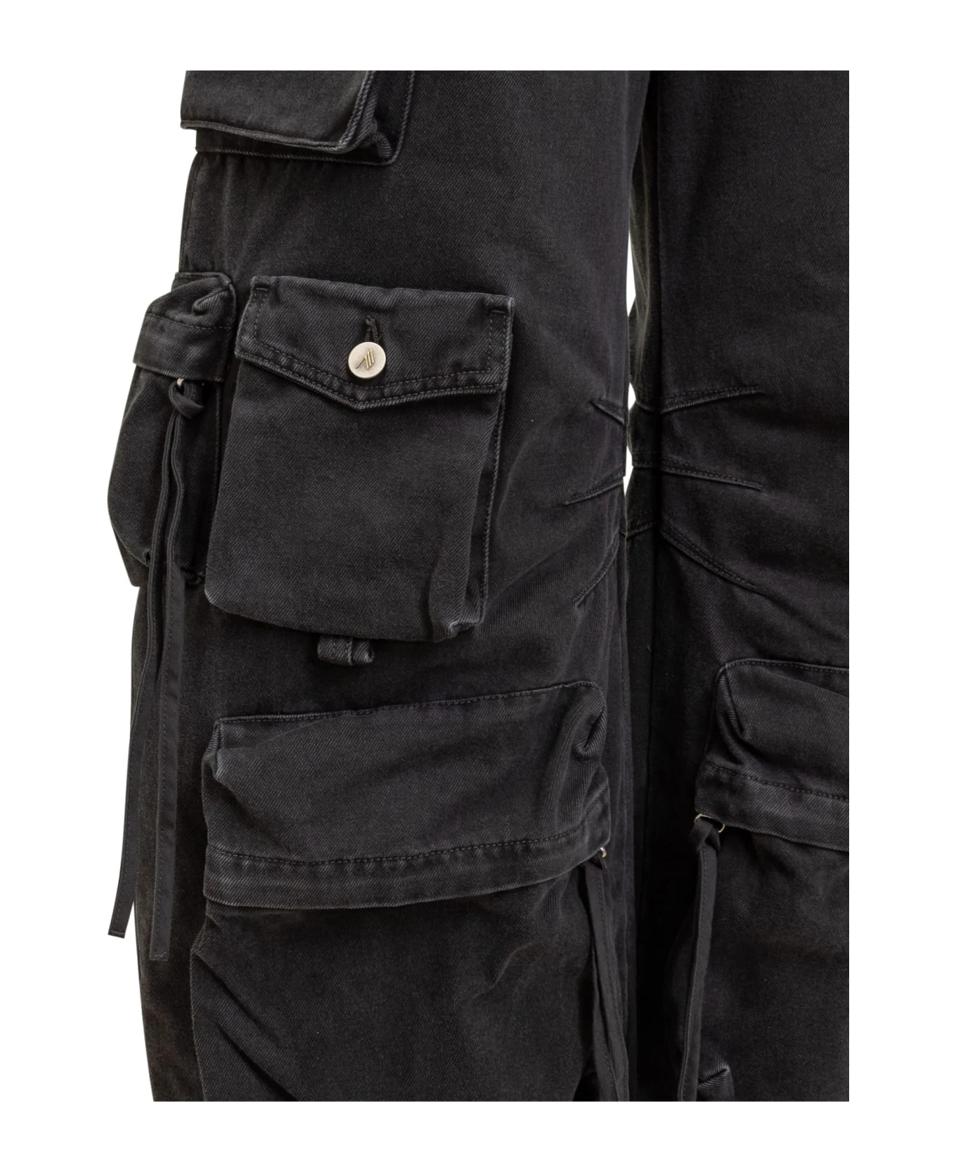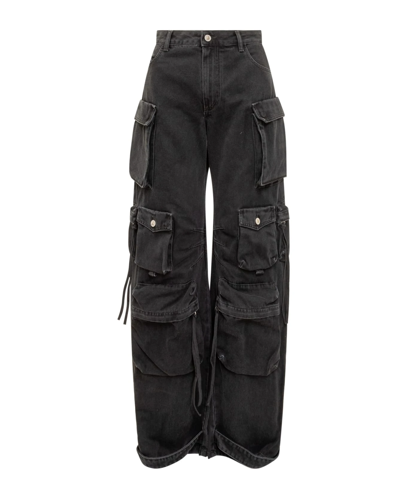 Black denim miniskirt. Button and zip closure. Belt loops. All-over pockets with laces. Buttons with logo.