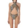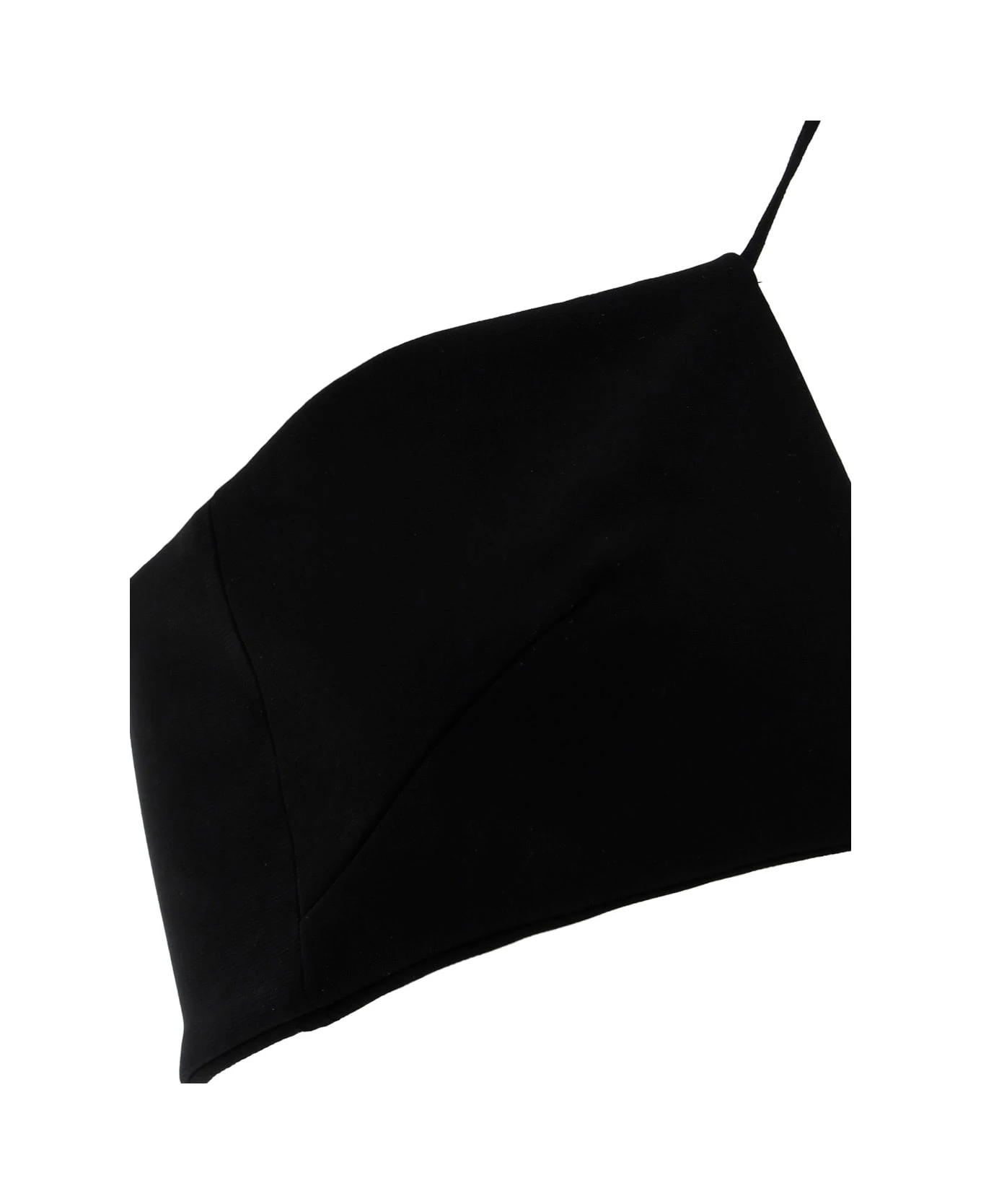 Flower heart top by nensi dojaka, crossover neckline on front, 3d fabric flower appliqué on front, bandeau style, monochrome pattern, hook-and-eye fastening on back.