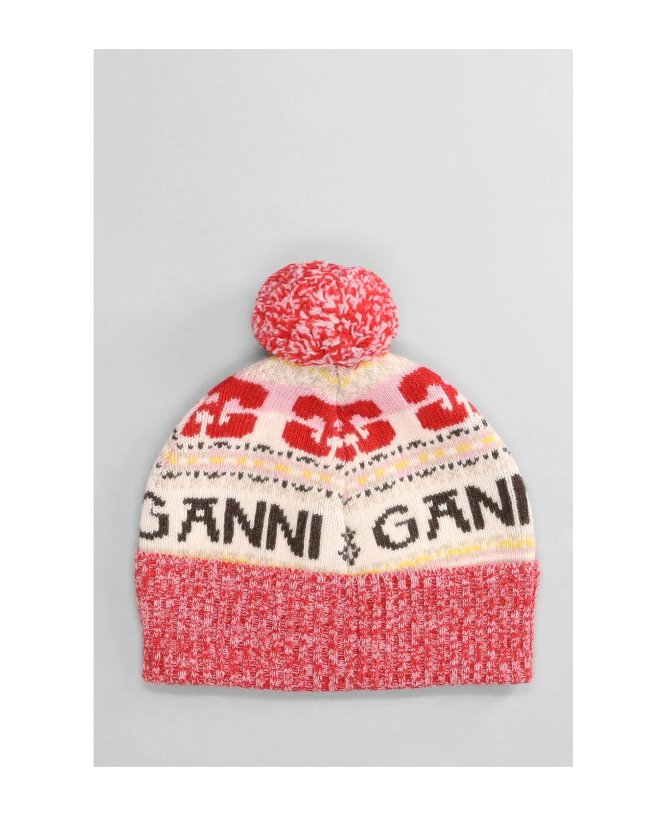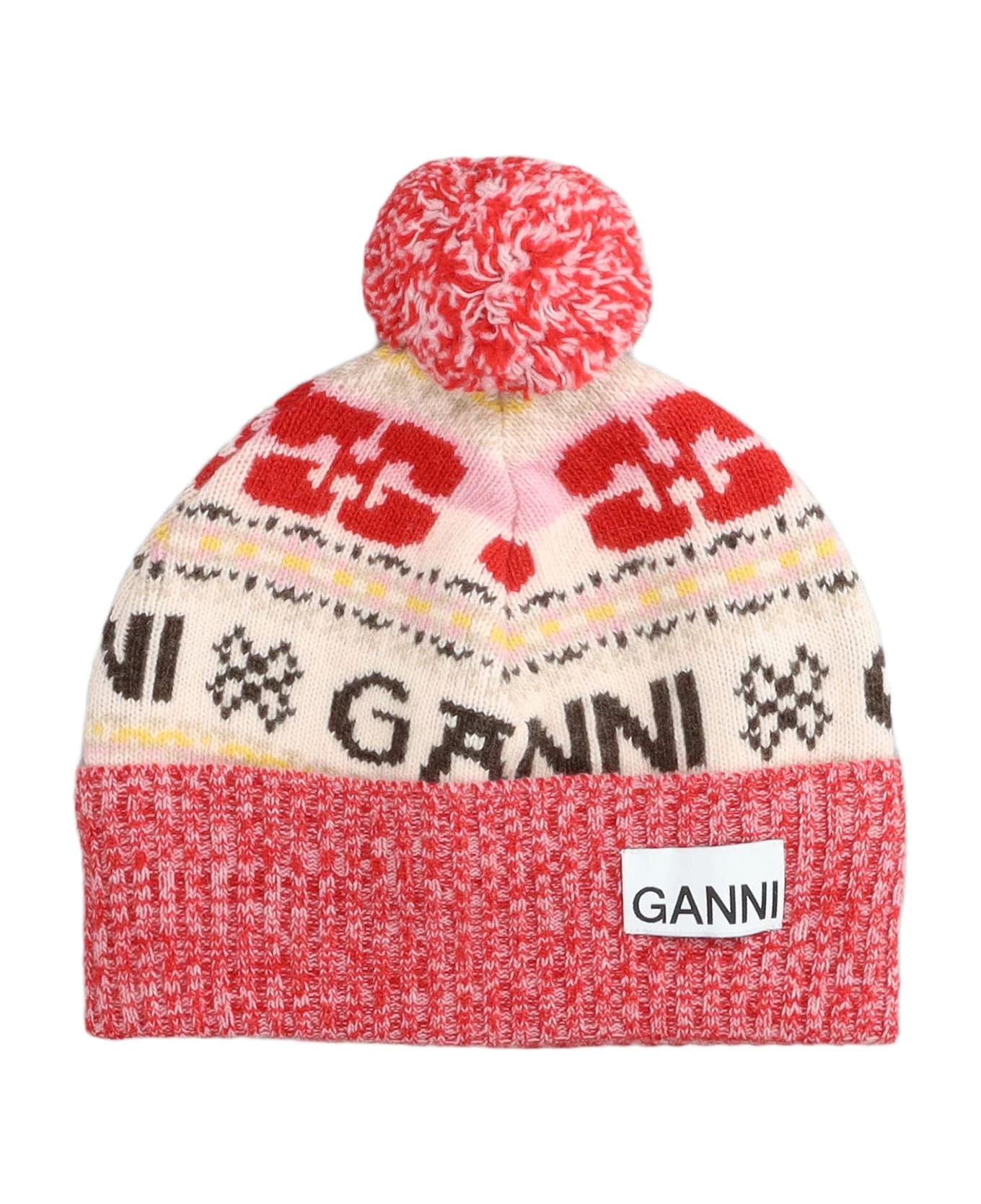 Hats in multicolor wool, lapel, side patch logo, pon pon, all over embroidery logo