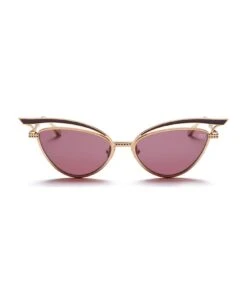 Valentino GLASSLINER – GOLD / BURGUNDY (VLS-118B-55) are cat-eye sunglasses made in Japan. They feature gold Japanese titanium structure with suspended eyebrows enamel branded ceramic nosepads, rockstud hinge components, and dark burgundy lens with 100% UV protection.