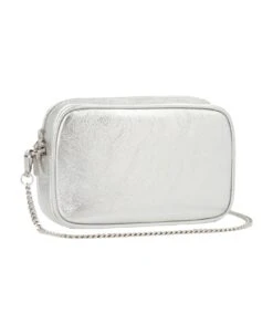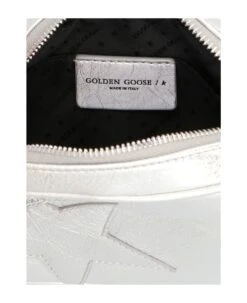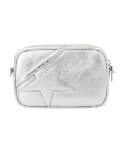 ‘Mini star’ wrinkled-effect patent leather crossbody bag with tone-on-tone logo patch, adjustable and removable shoulder strap and zip closure.