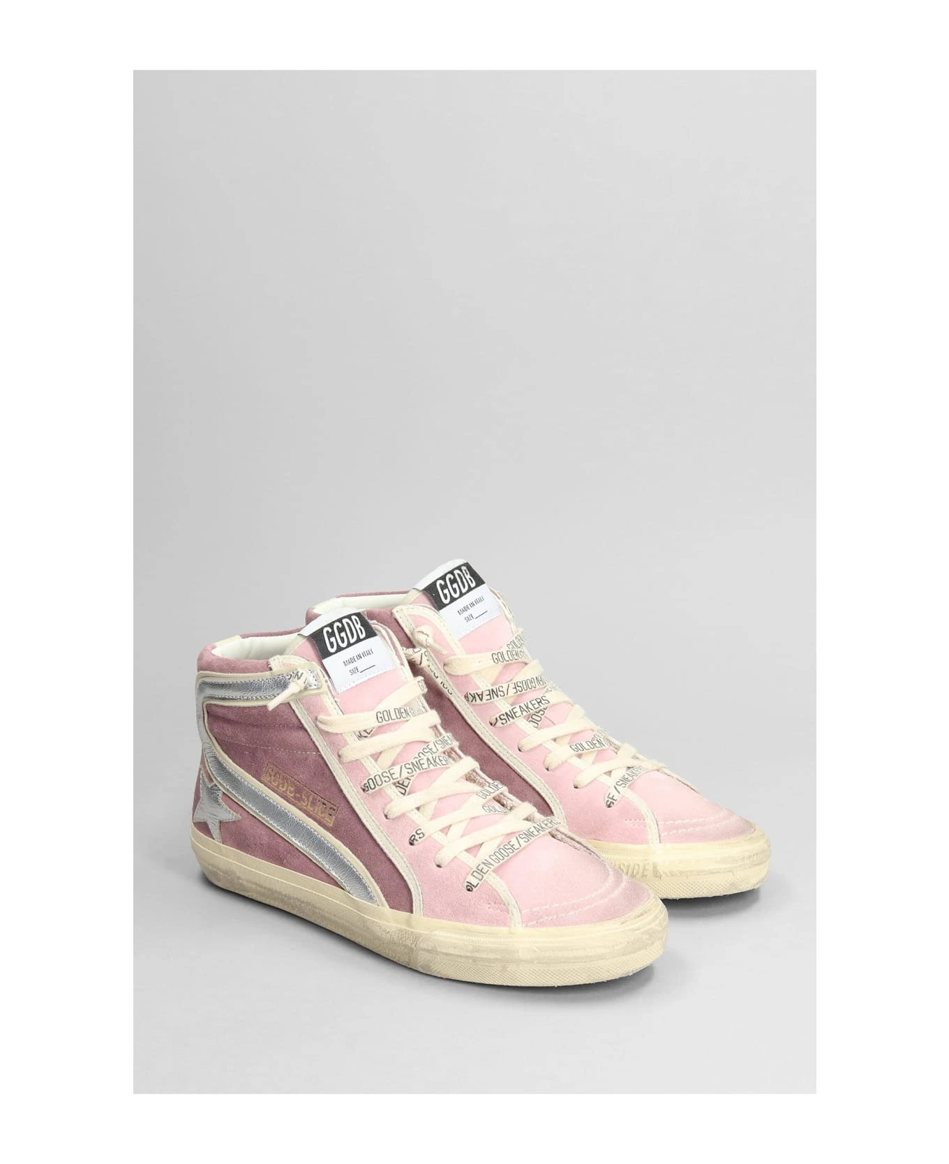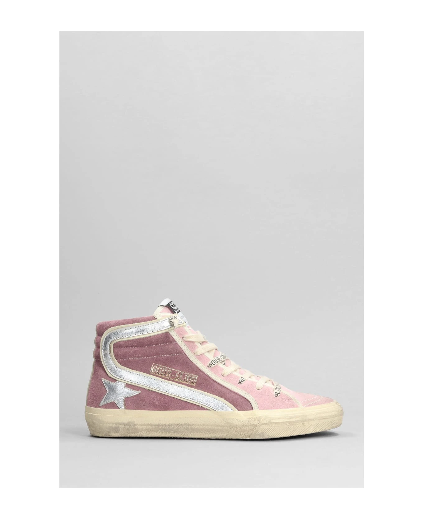 Slide Sneakers in Viola suede, laces, logo on heel, star on side, rubber outsole, 100% leather, Made in Italy