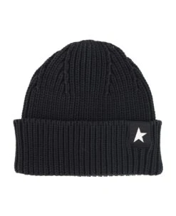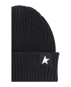 Wool star hat by golden goose, all-over ribbed design, iconic contrasting applied star logo at hem.