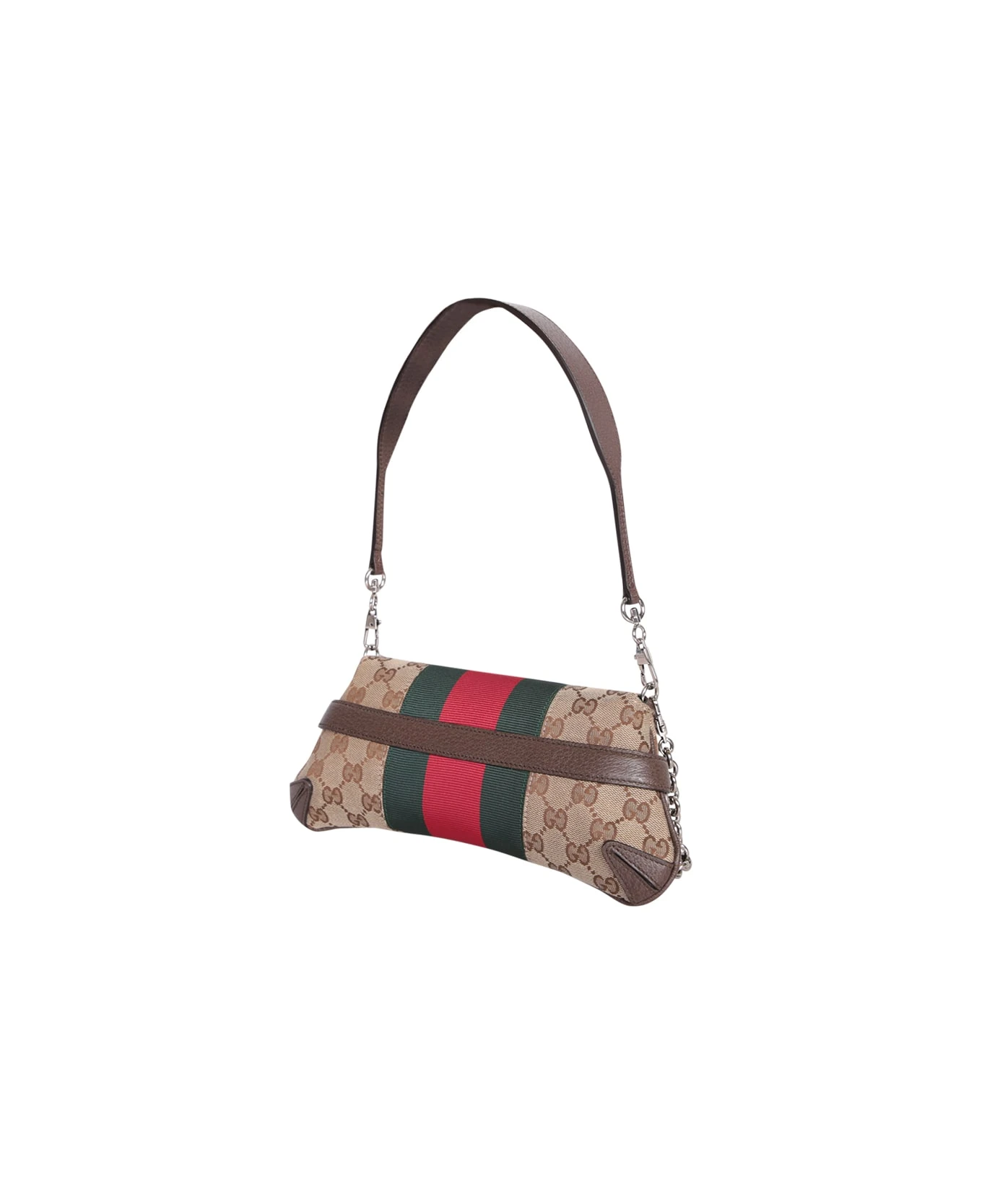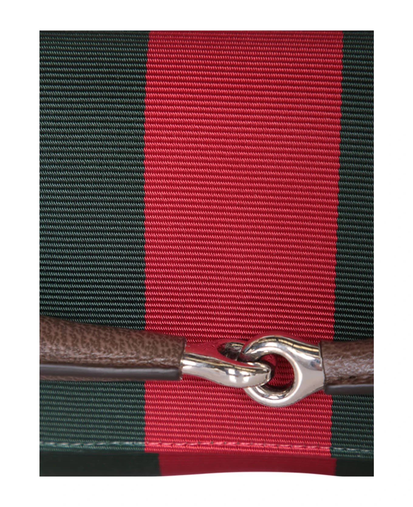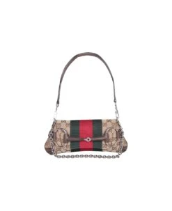 Foldover top. Magnetic fastening. Internal slip pocket. Web ribbon details. All-over GG motif. Horsebit details to the front. Detachable chain-link shoulder strap. Silver-tone hardware. Color: beige/ multicolor