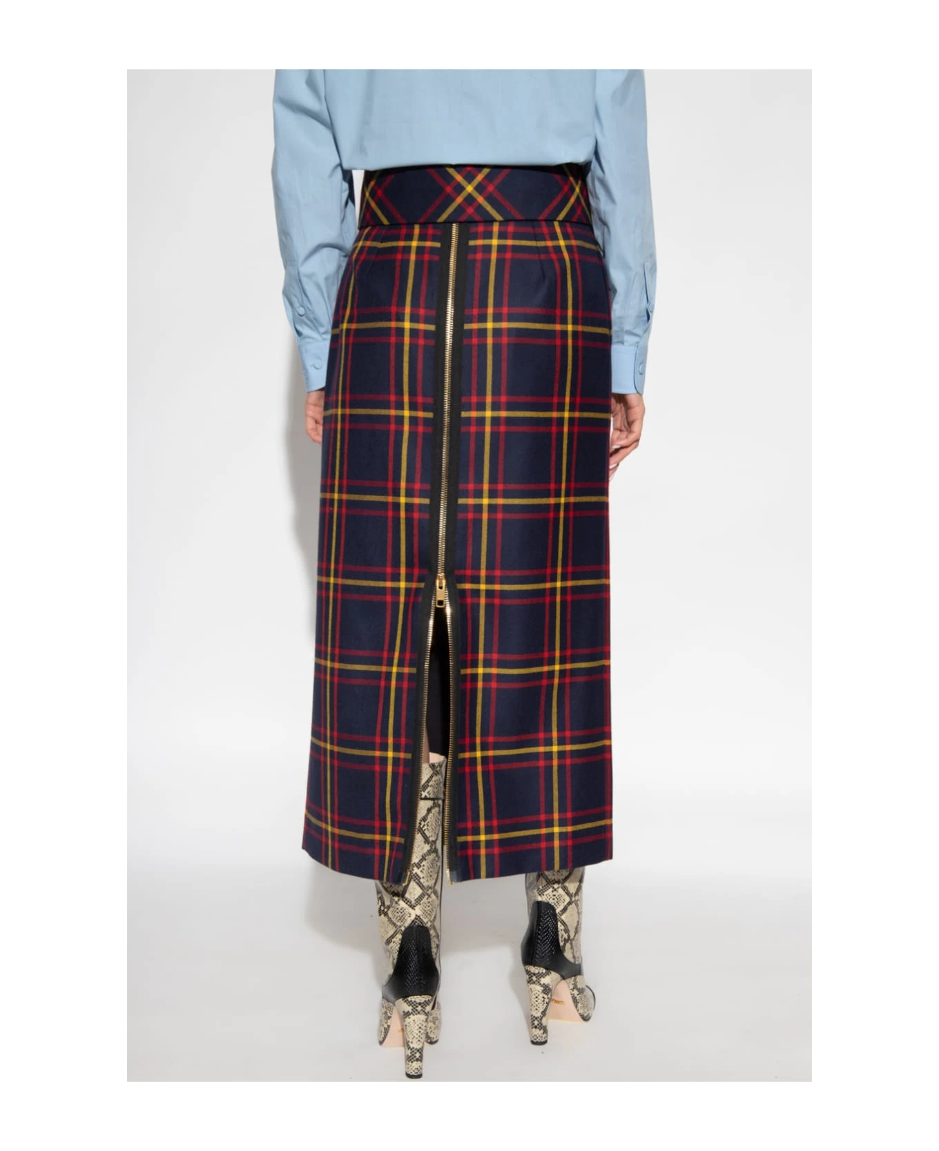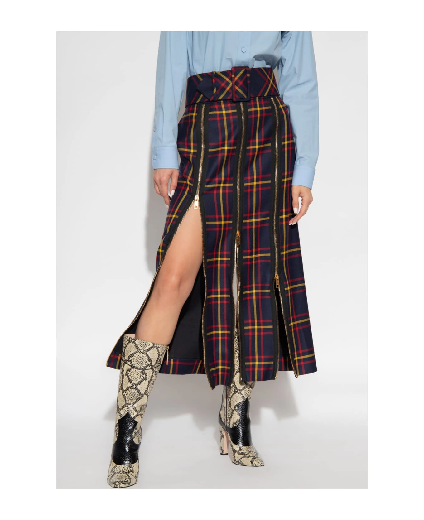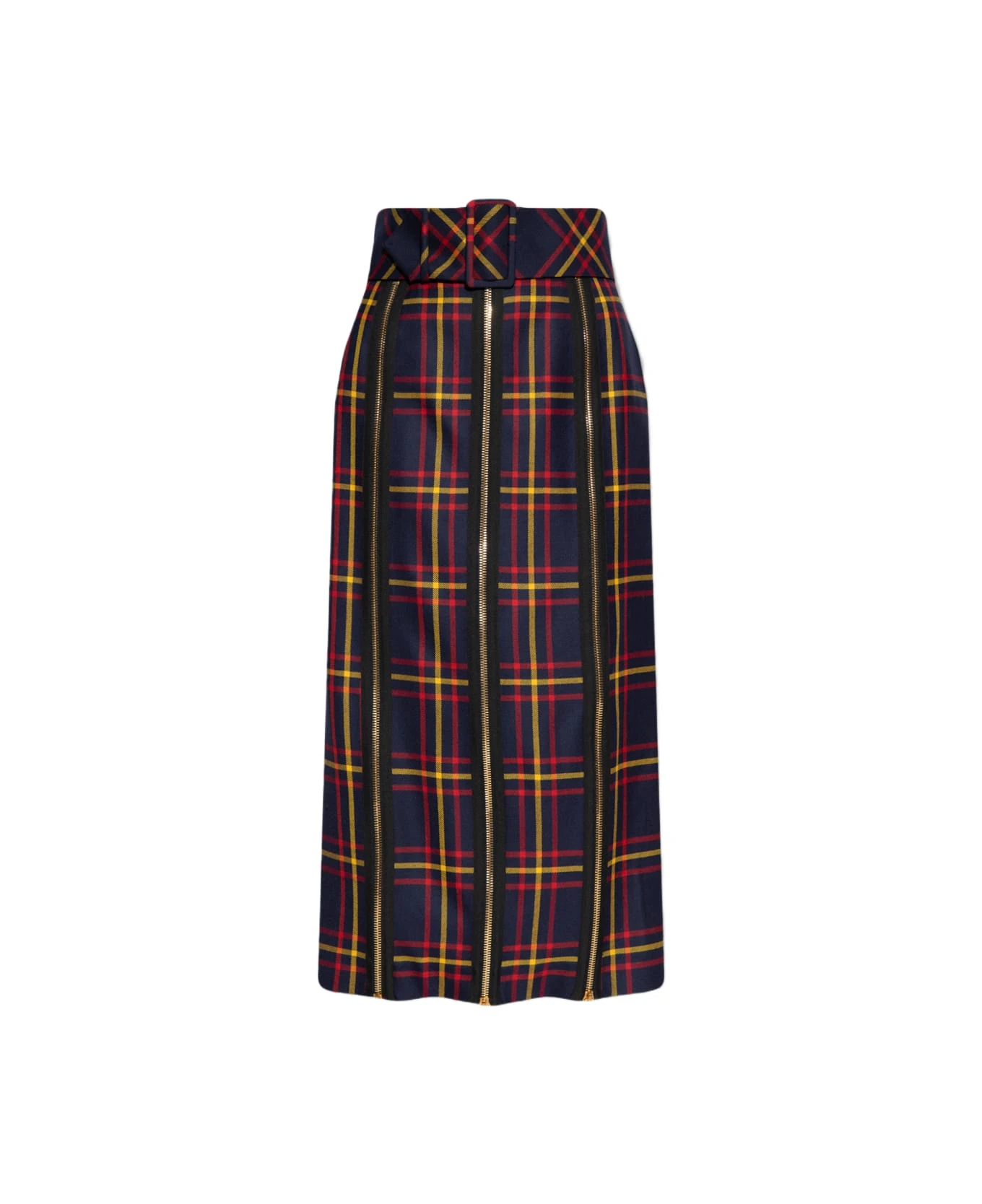 Wool skirt with high-rise waist, back, full zip details and detachable self-belt