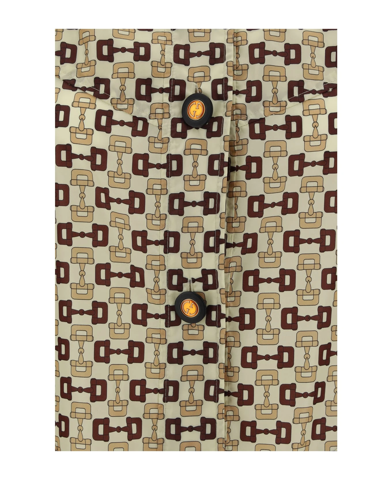 Windproof jacket by gucci, classic collar, front closure with embossed and resin-coated buttons, adjustable button cuffs, graphic pattern with iconic all-over repeated horsebit in contrast, two side welt pockets, regular fit.