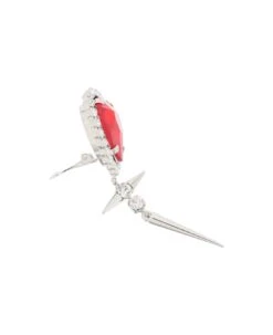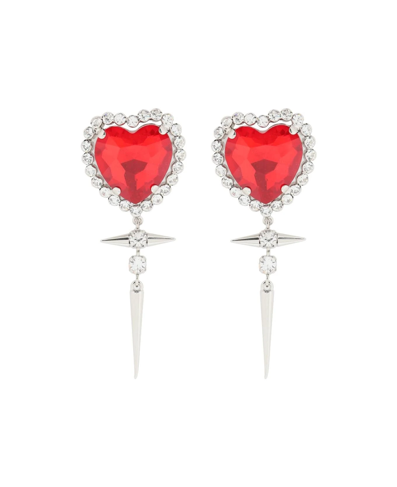 Alessandra Rich clip-on heart earrings made of silver-plated brass with pendant pointed studs.