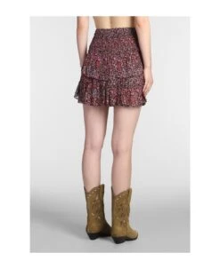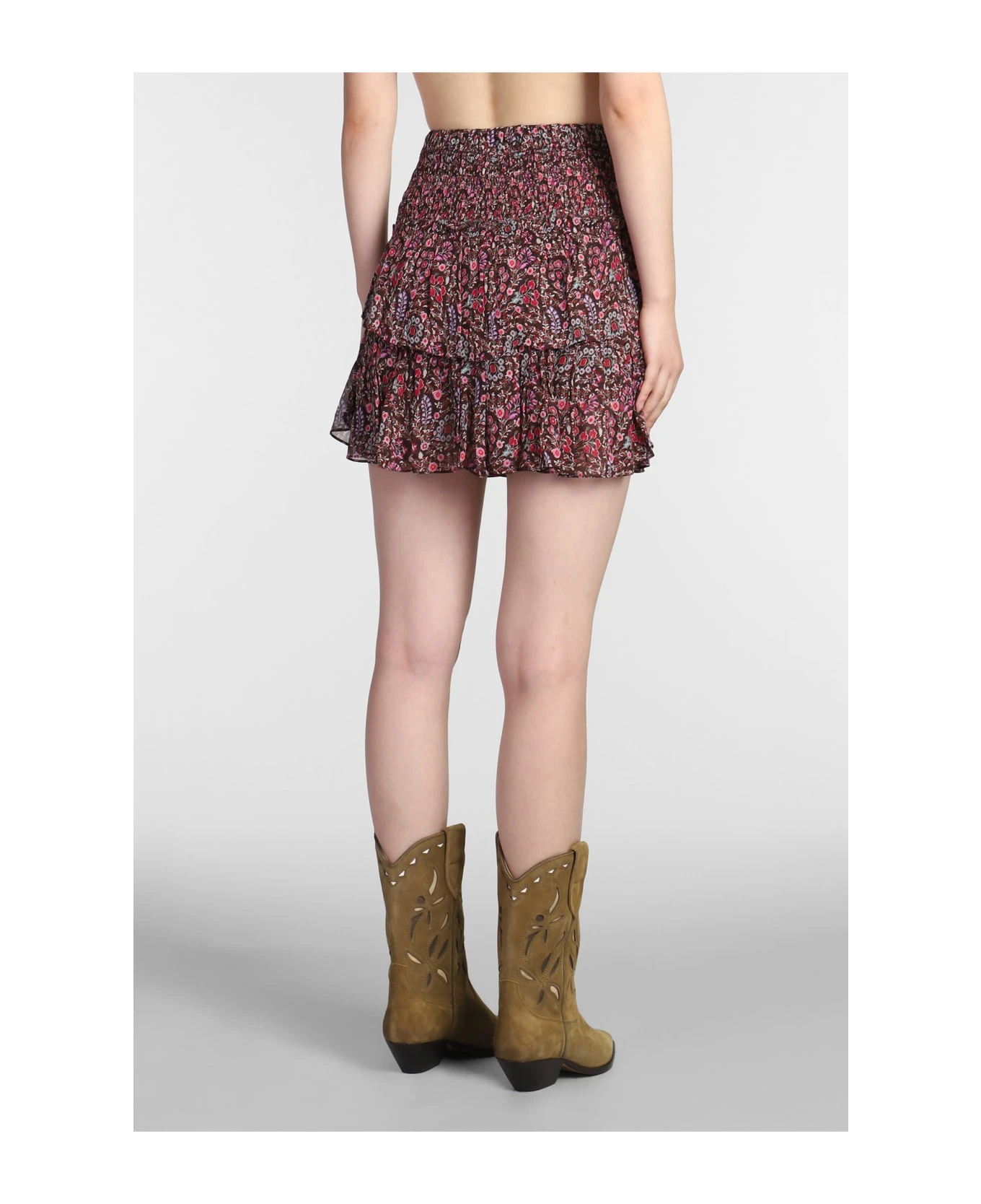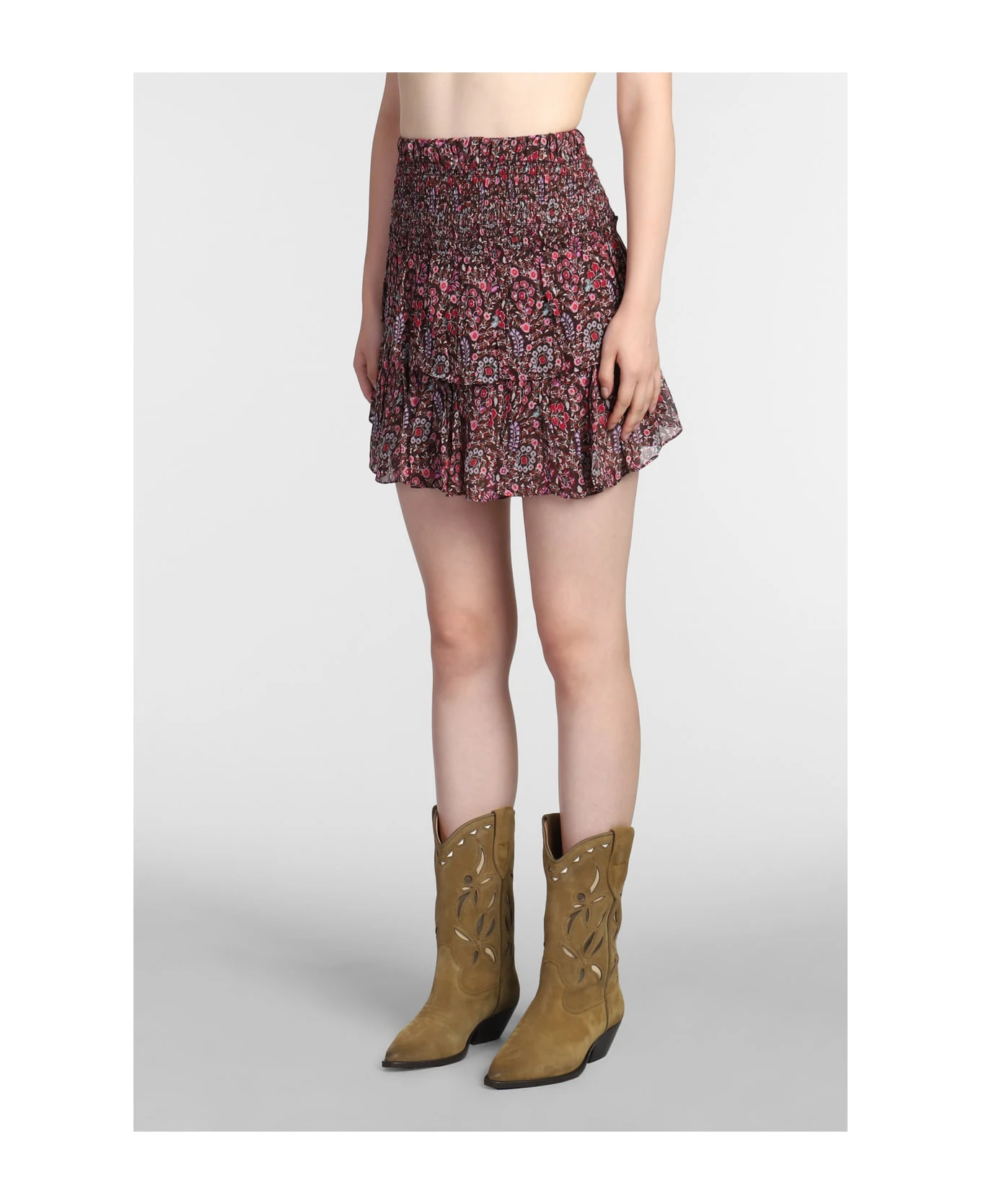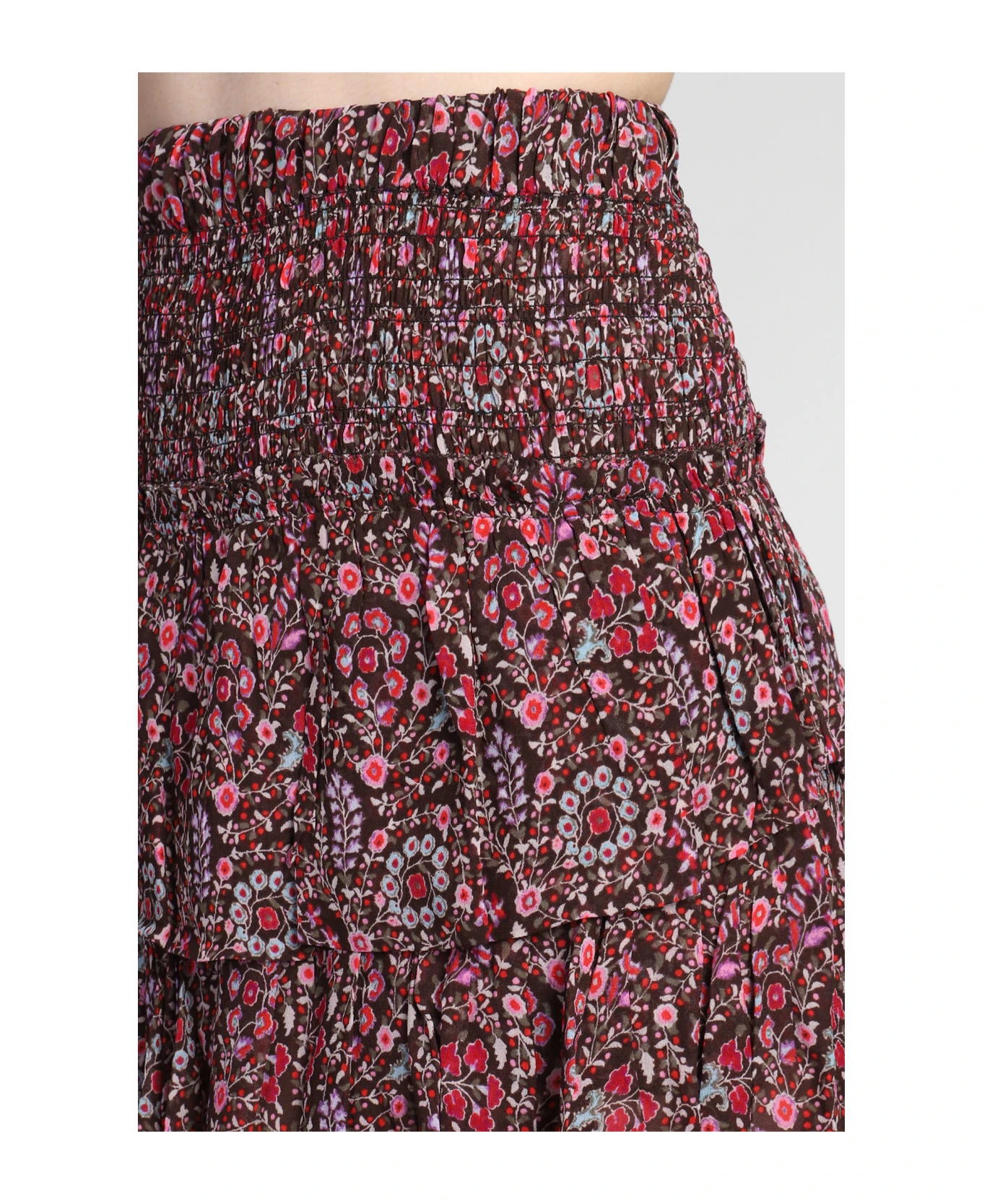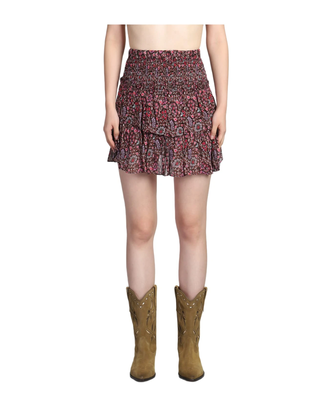 Hilari Skirt in brown viscose, Elastic waist, ruffles, floreal print all over, 100% Viscose, Made in India, Model is 1. 77 cm and wears size 36