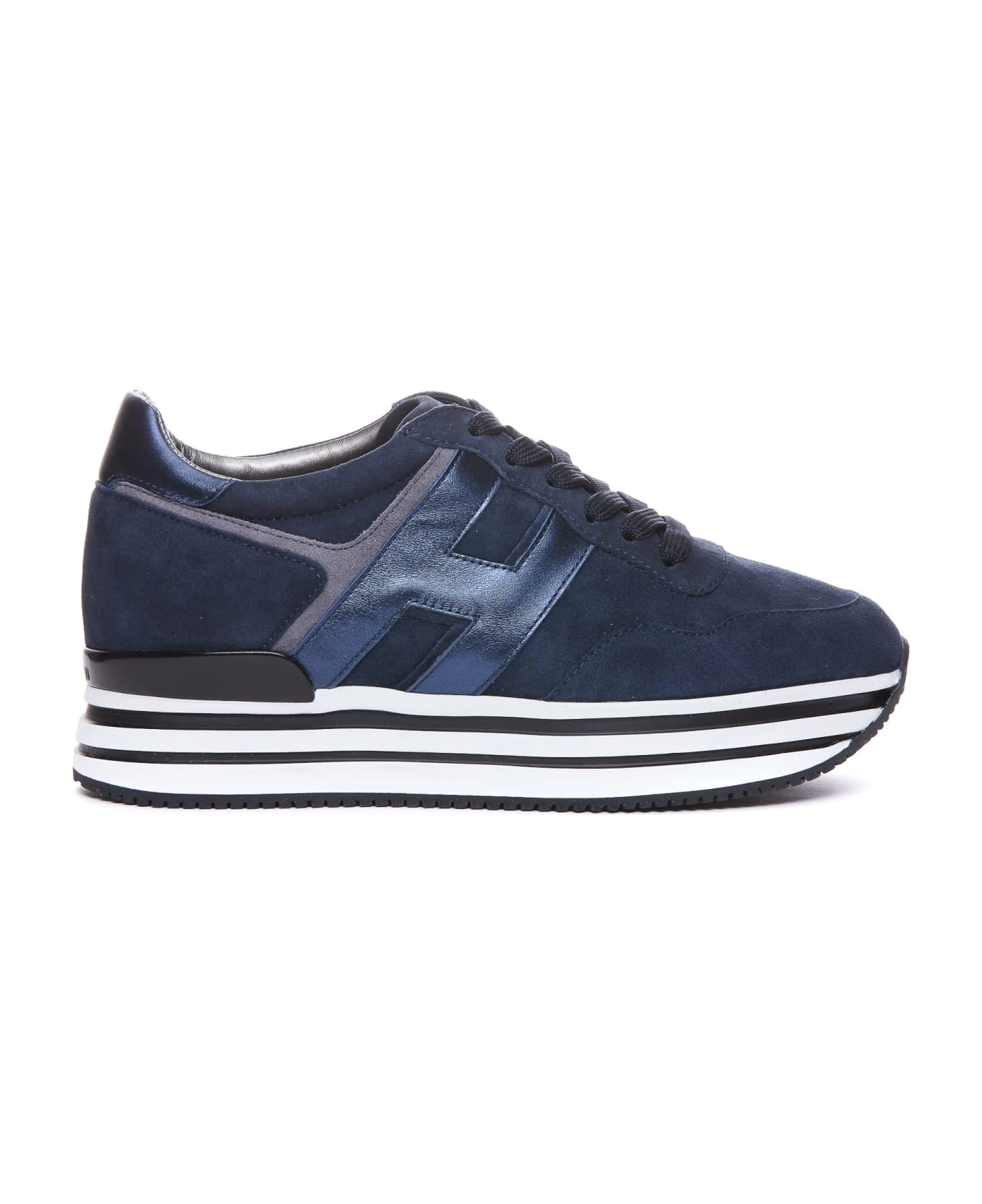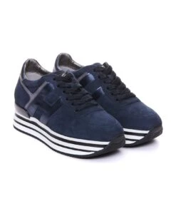 Hogan blue H483 sneakers, suede and leather upper, logo, laces closure, eu size