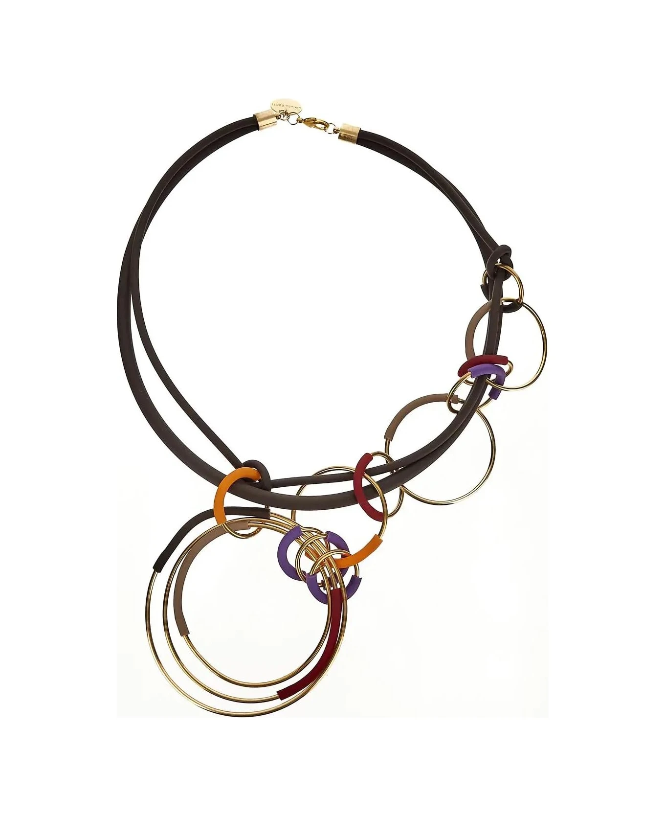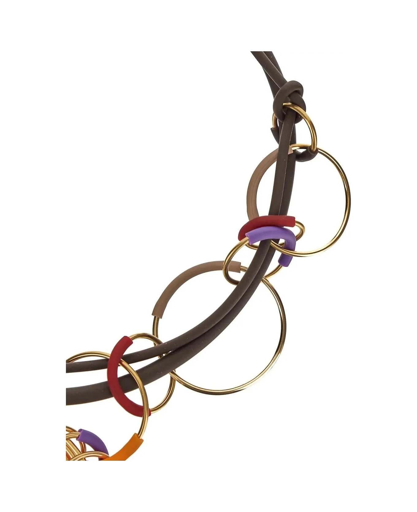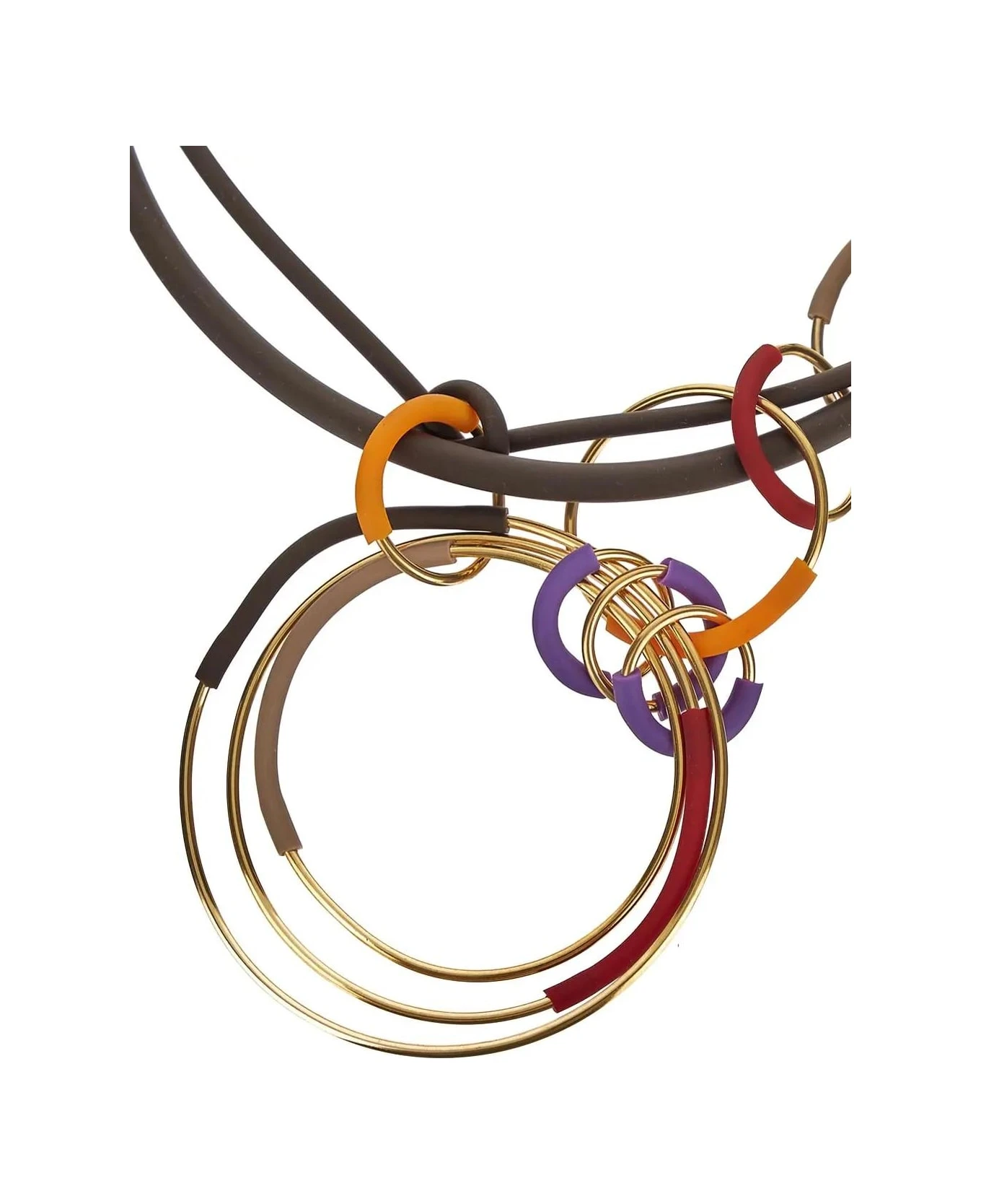 Liviana Conti necklace in golden-finish metal and multicolor rubber hoops and adjustable lobster clasp closure.
