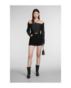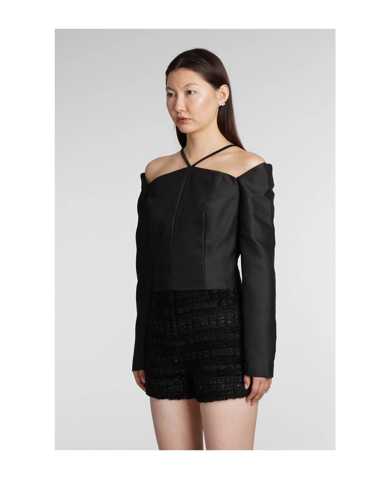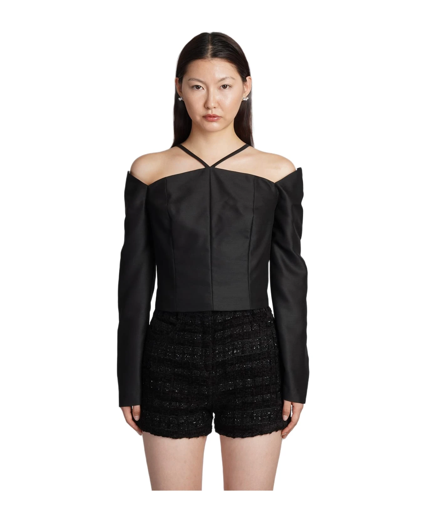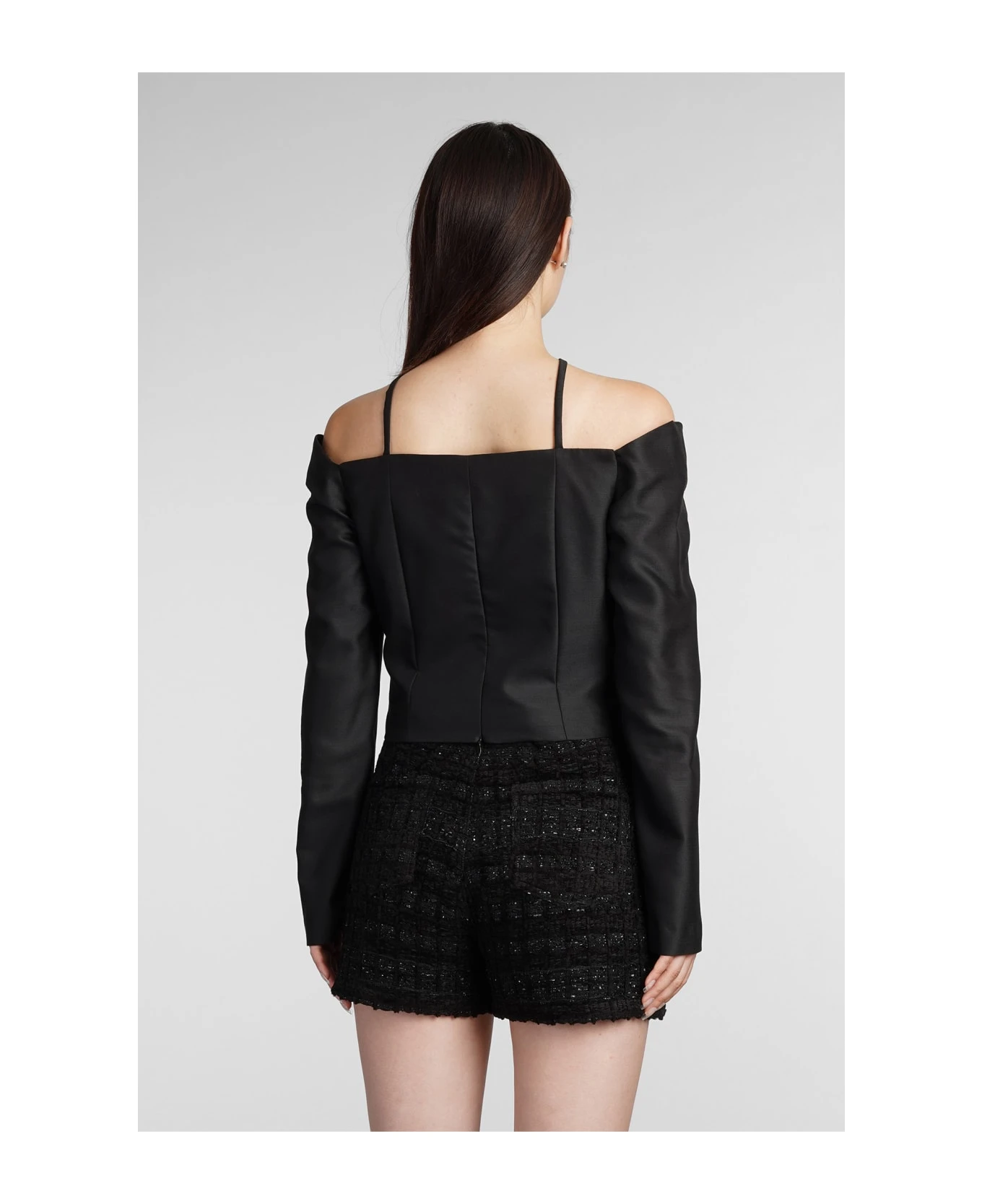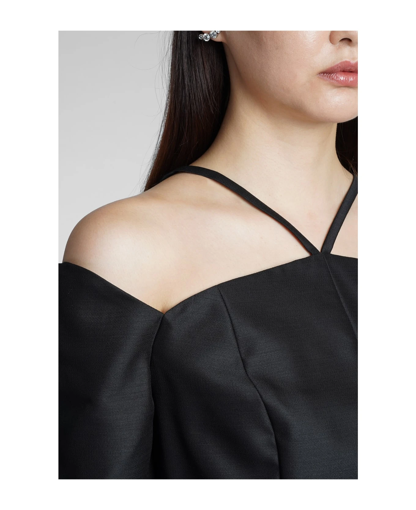 Paju Topwear in black wool, laces detail, cut out detail, long sleeves, zip clousure, 85% wool 15% silk, Made in Bulgaria, Model is 180 cm and wears 38