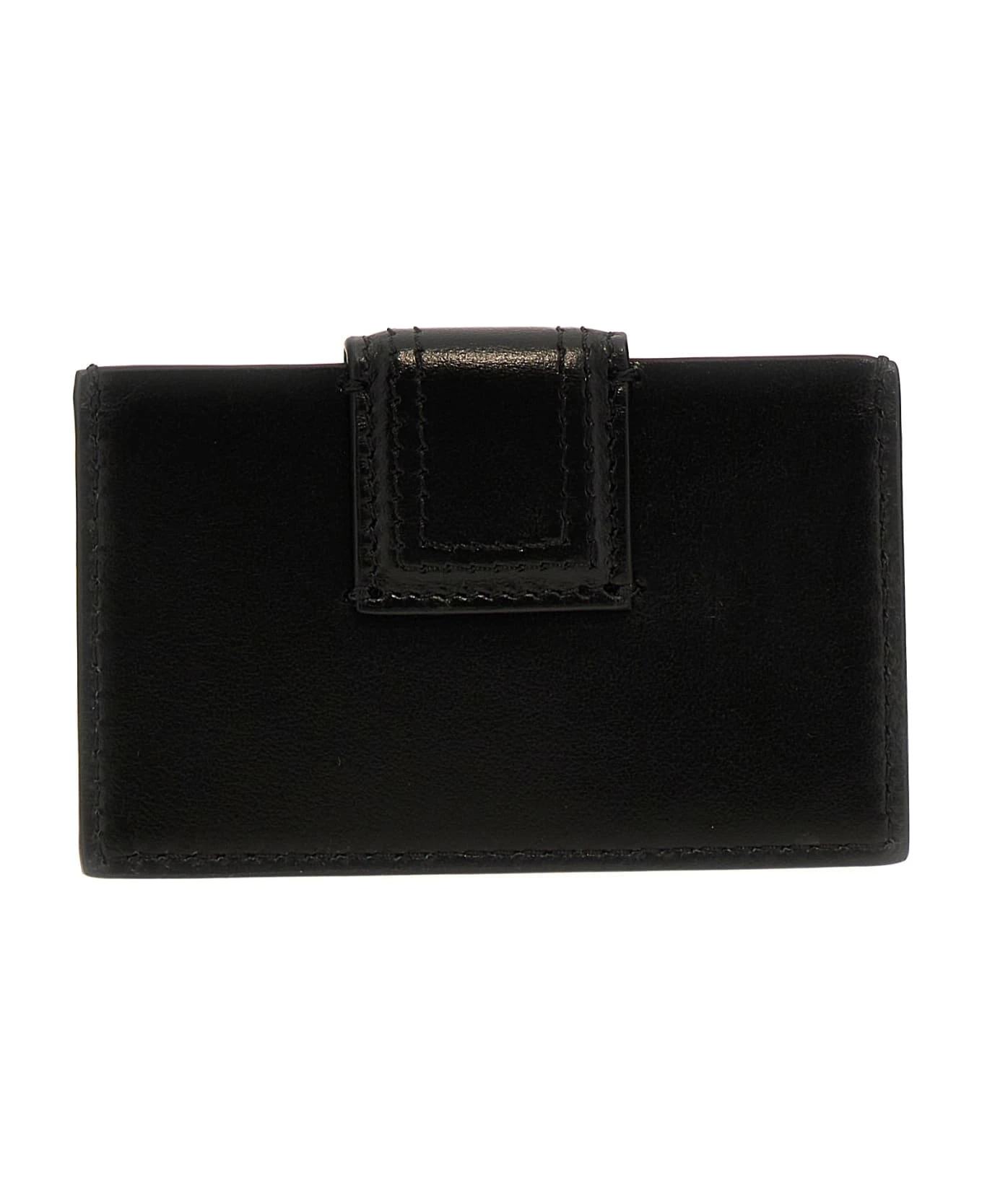 ‘Bambino’ leather card holder with magnetic closure.
