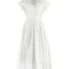 ‘La Robe Camisa stretch cotton blend twill dress with a shirt collar, short sleeves, front button closure, draped yolk on the sides and cut out detailing on the left side. e.