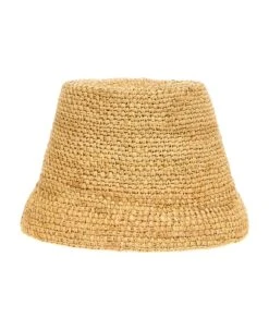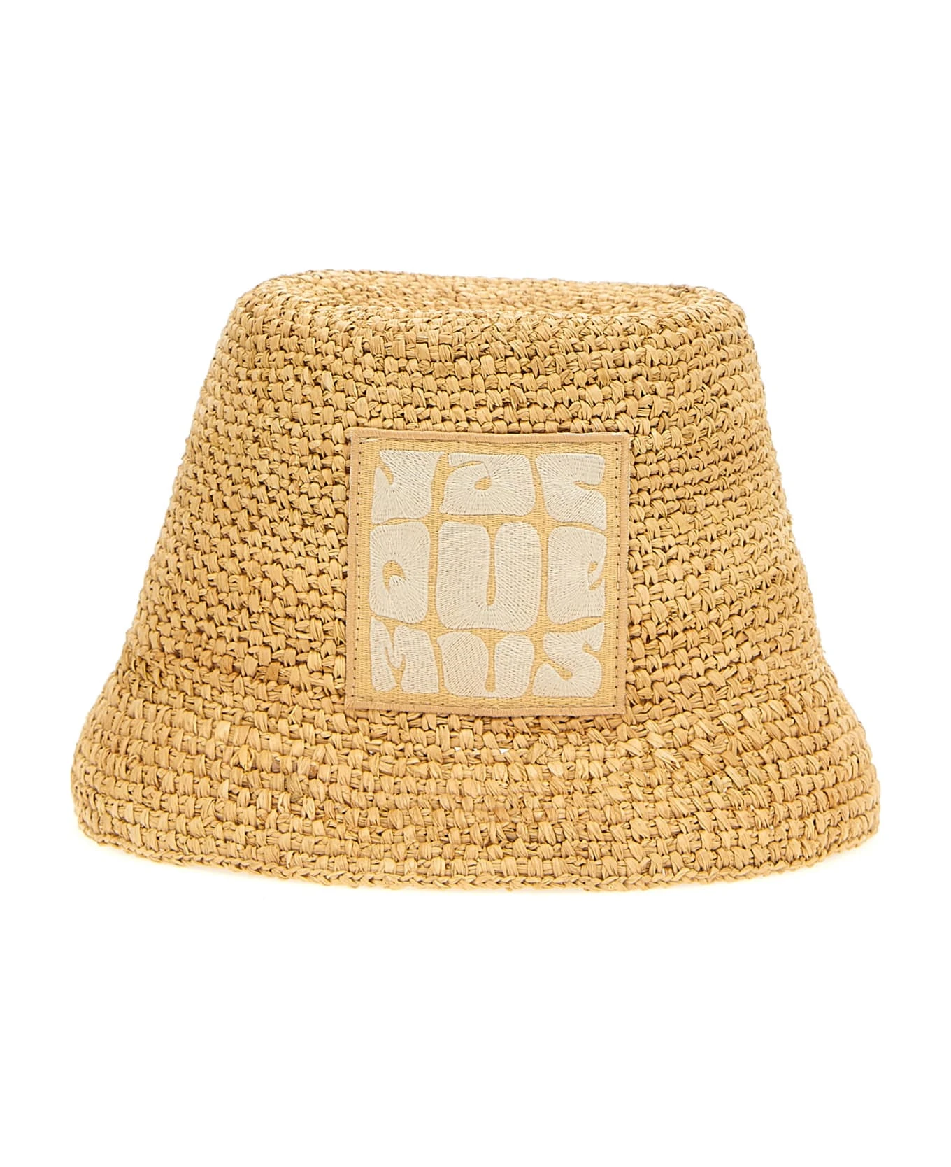 Le Bob Ficiu’ raffia bucket hat with a front logo patch.