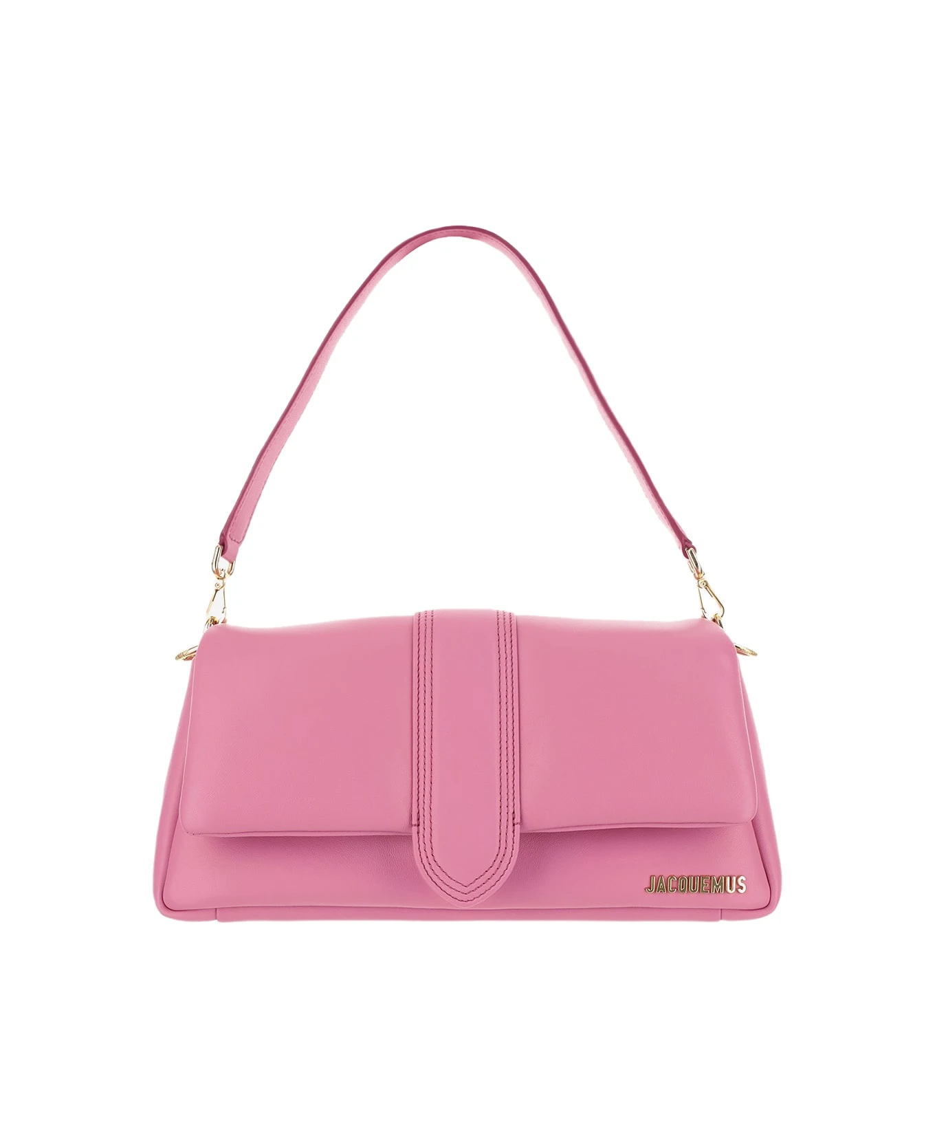 Gold-colored metal logo lettering applied to the front