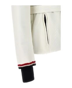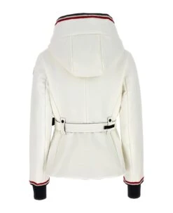 ‘Jockeys’ down jacket in technical fabric with padded interior, double hood, zip closure with side embroidery, adjustable and removable waist belt, cuffs with thumb hole.