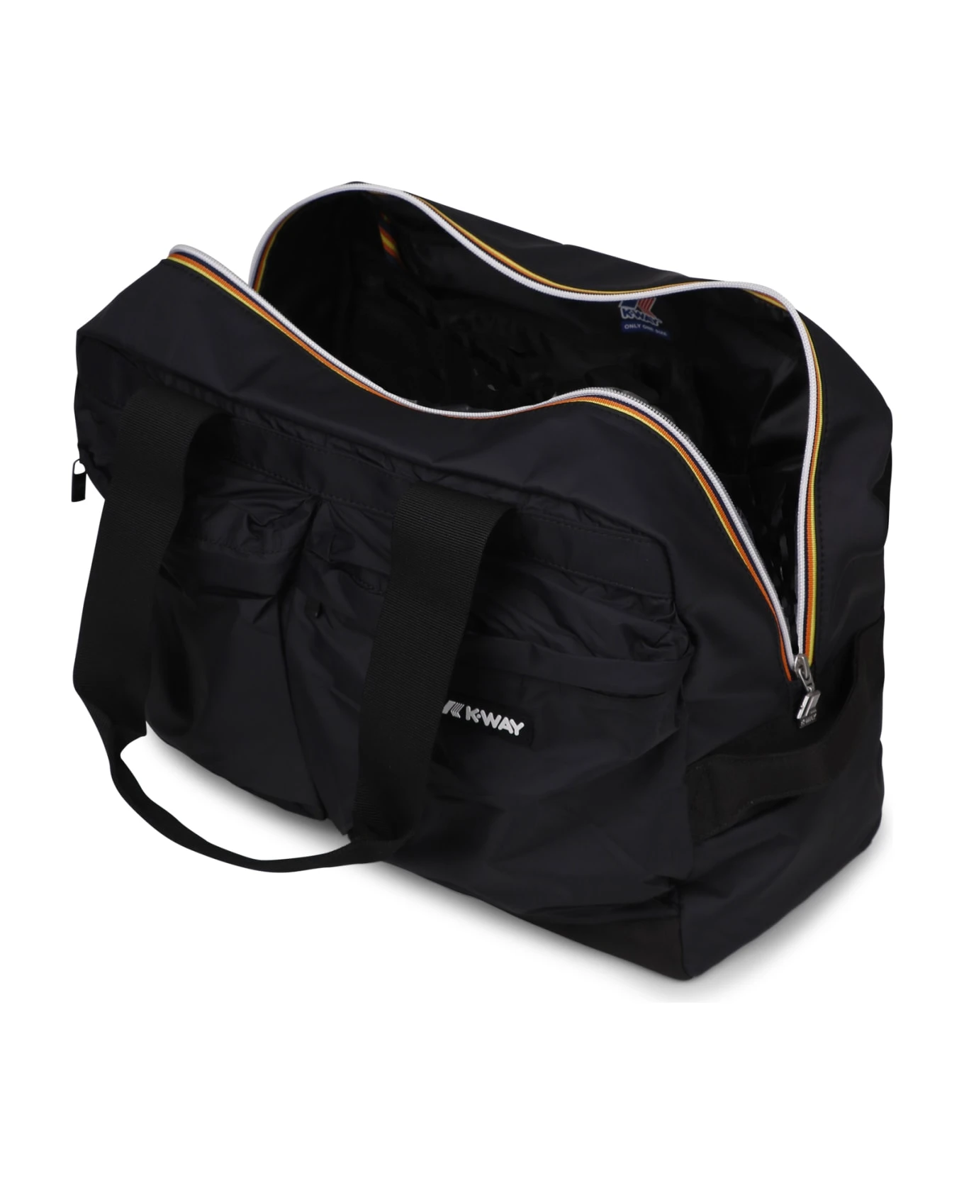 Ardelu S duffle bag from K-WAYWaterproof, water-repellent and windproof ripstop. Tape handle. Side handleTwo front zip pockets. Main K-Way zip fastening. Multifunctional inside compartments. White silicone logo. Outer: 100% Nylon; Internal: 100% Polyester. Made in China.