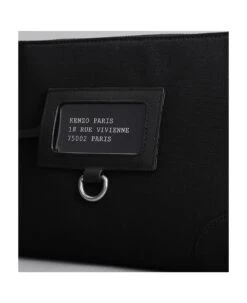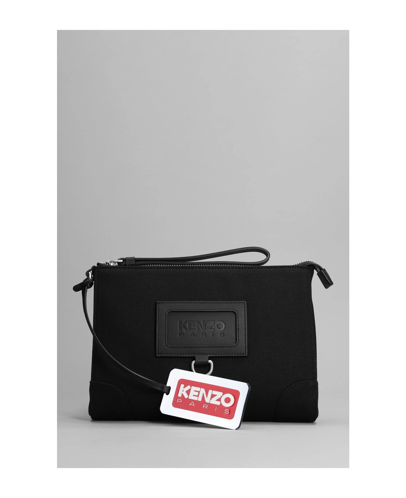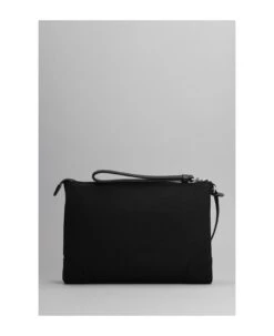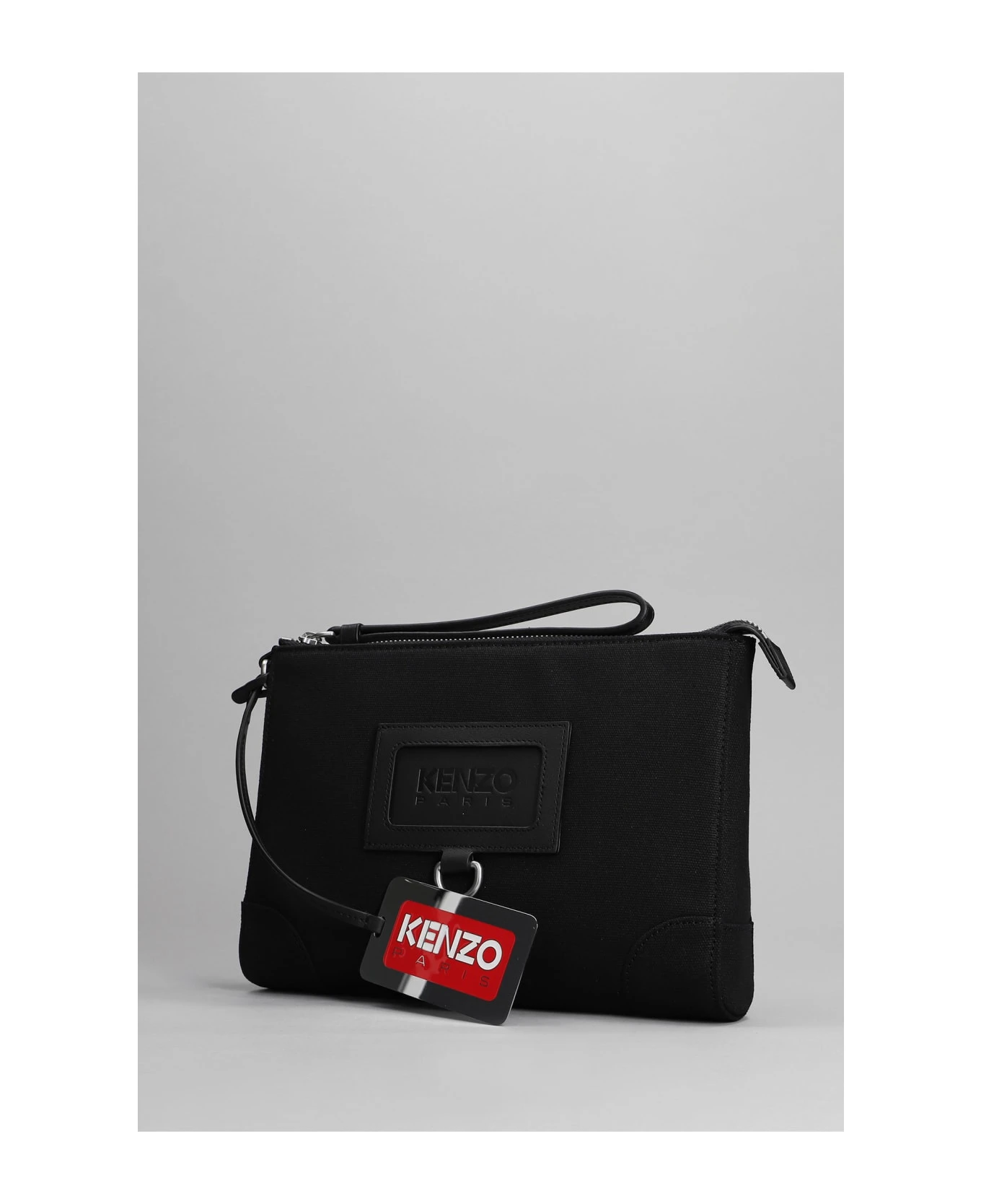 Clutch in black cotton, Height 165 mm, Width 245 mm, Height 165 mm, Width 245 mm, Wristlet, zip clousure, tag logo detail, Made in China