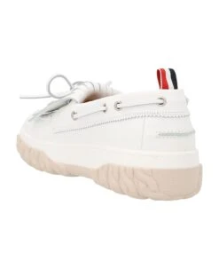 Kilted Boat’ leather loafers with lacing, openwork details and a rubber sole.