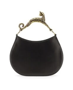– Single Handle With ‘cat’ Design- Adjustable And Removable Shoulder Strap- Zipper Closure- Main Compartment- Logo Detail- Dimensions: H 15 Cm X W 25 Cm X D 6 Cm- 100% Leather
