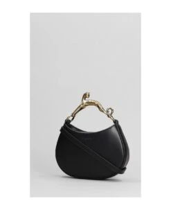 Hobo Shoulder bag in black leather, culptural handle, leather braided strap, magnetic closure, engraved logo, internal pocket, canvas lining, 100% leather, Made in Italy, Height 115 mm, Width 155 mm