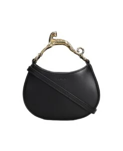 Hobo Shoulder bag in black leather, culptural handle, leather braided strap, magnetic closure, engraved logo, internal pocket, canvas lining, 100% leather, Made in Italy, Height 115 mm, Width 155 mm