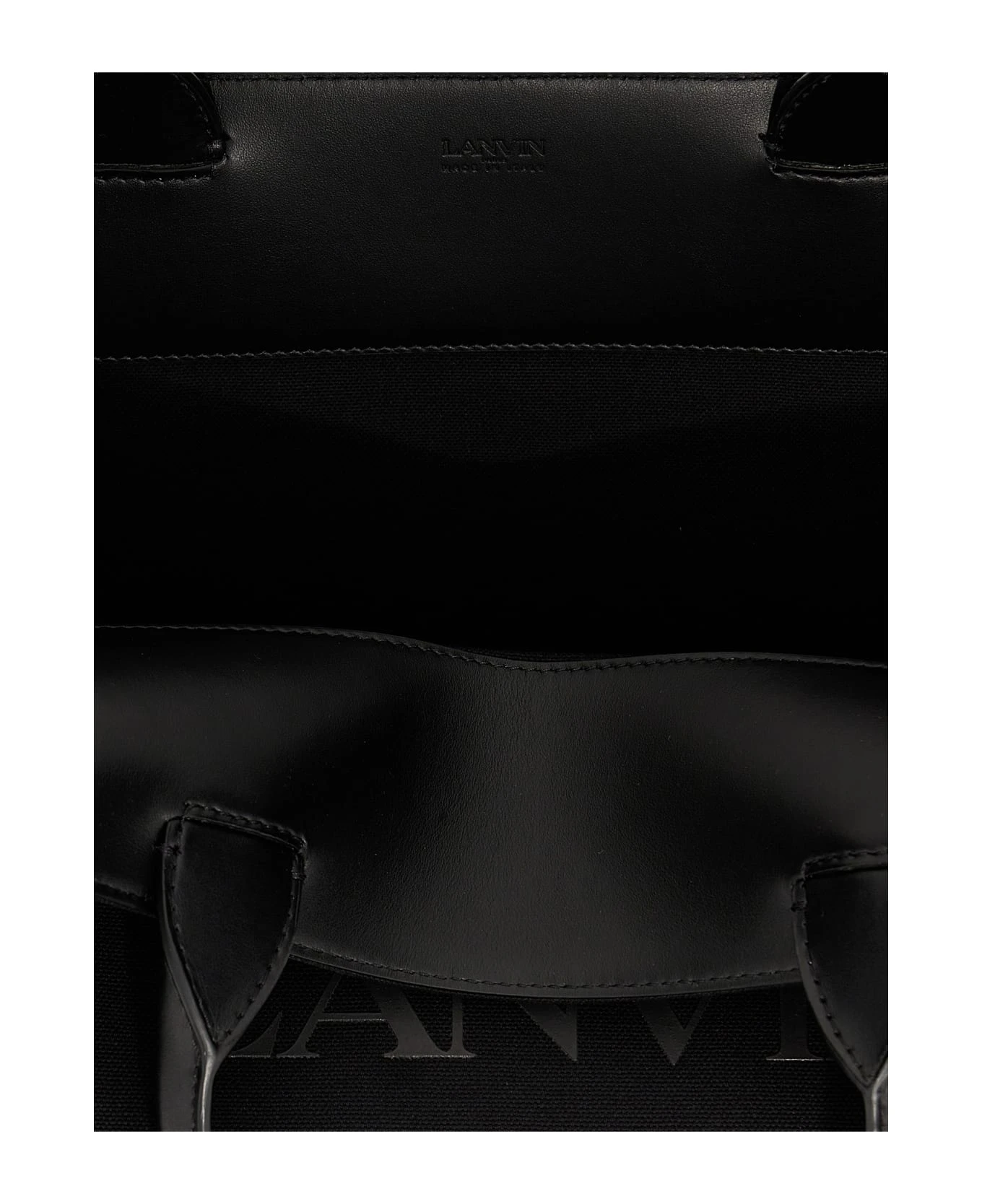 ‘MM’ canvas shopping bag with logo print, leather details, double handle, adjustable and removable shoulder strap, and internal clutch bag.