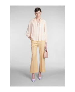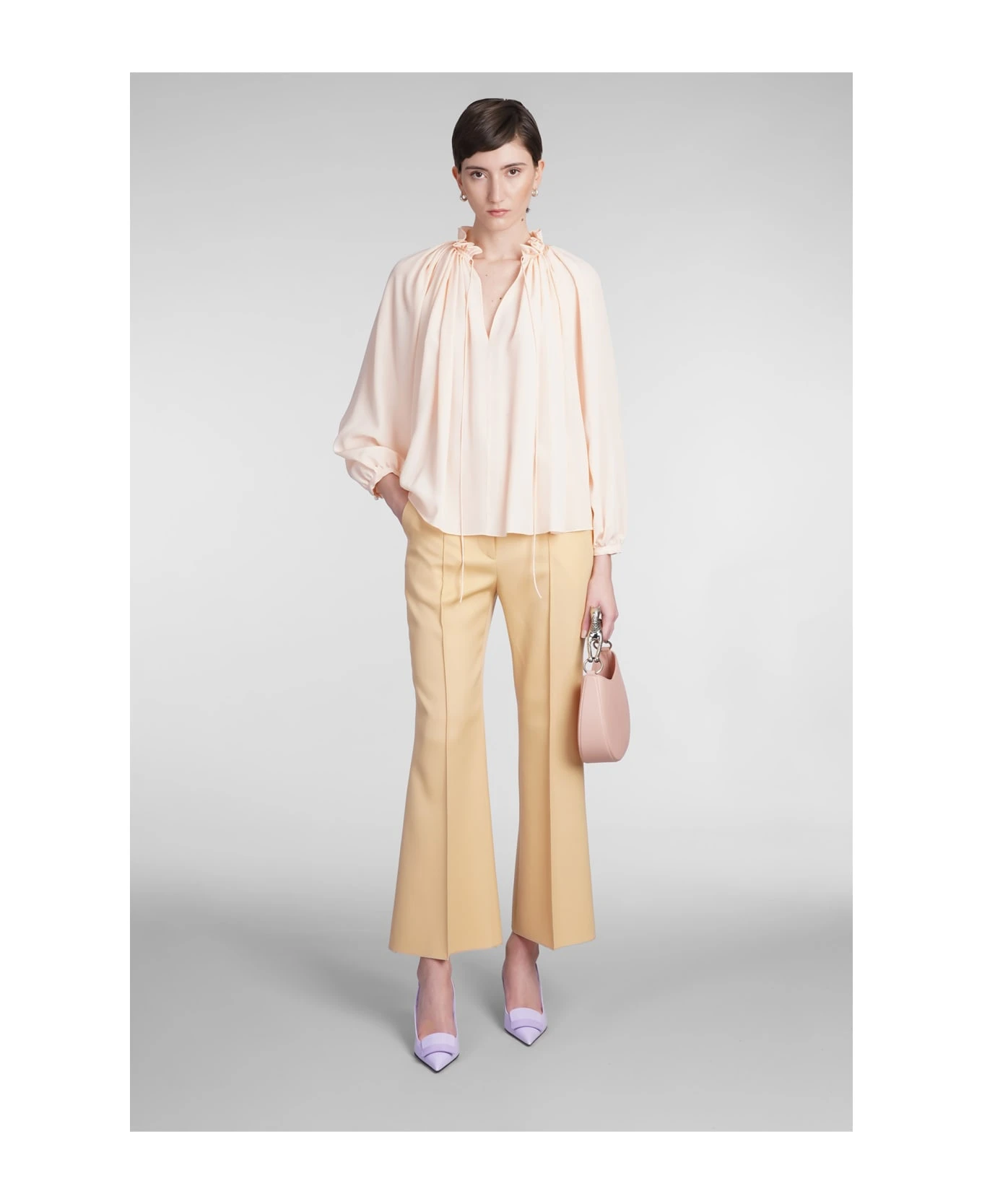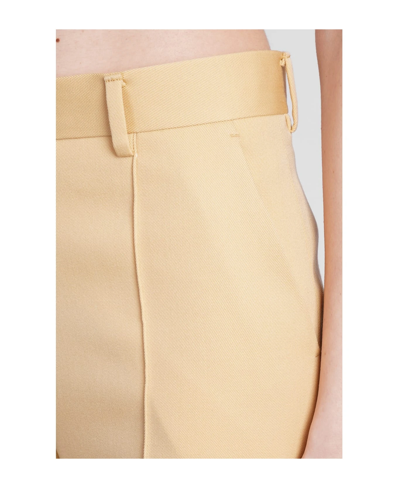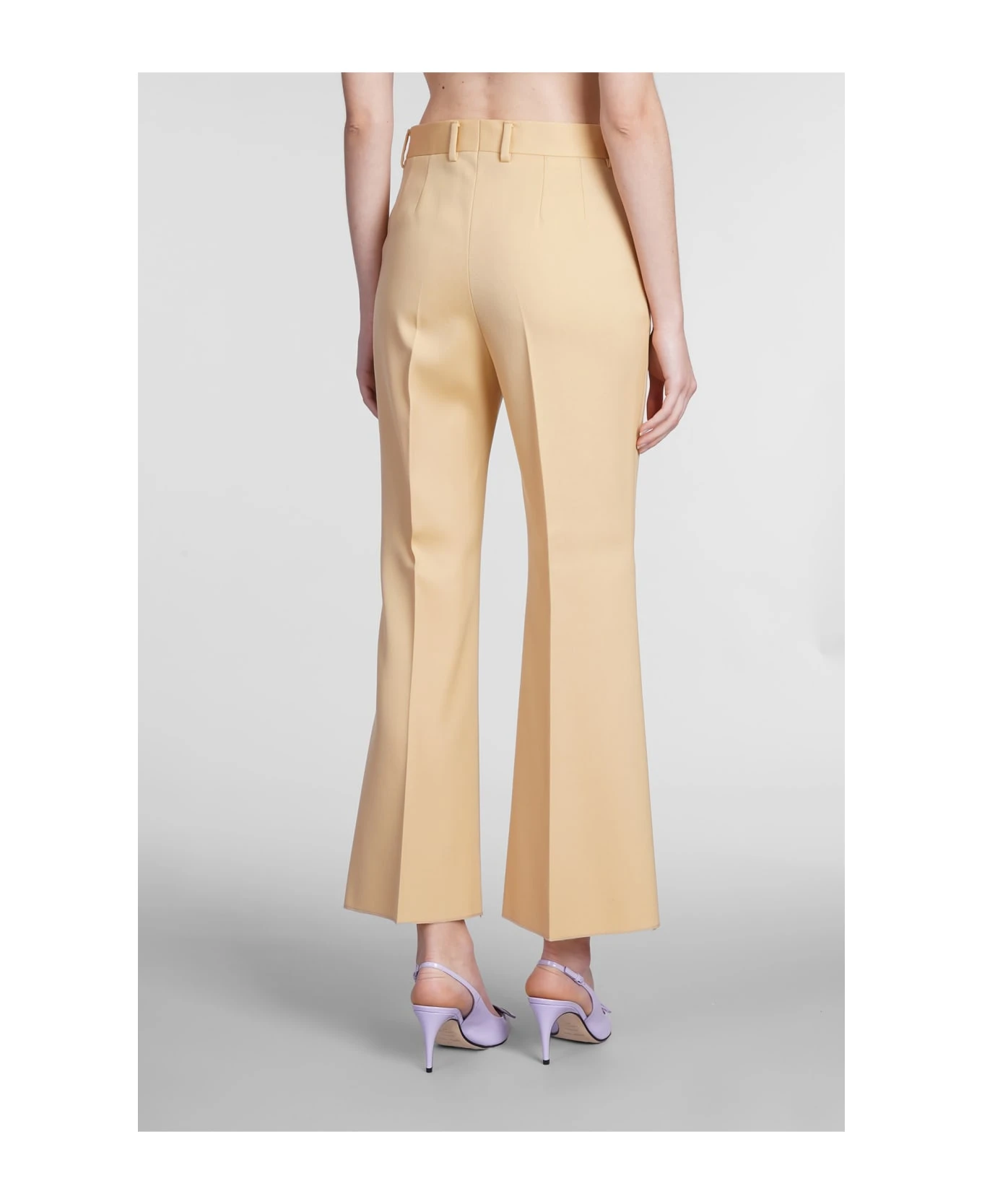 Pants in beige wool, concealed front fastening, waist belt loops, crop cut, pockets, 100% wool, Made in Italy, Model is 180 cm and wears 38