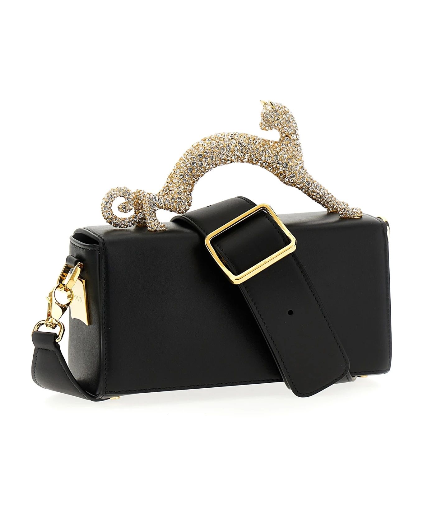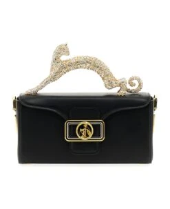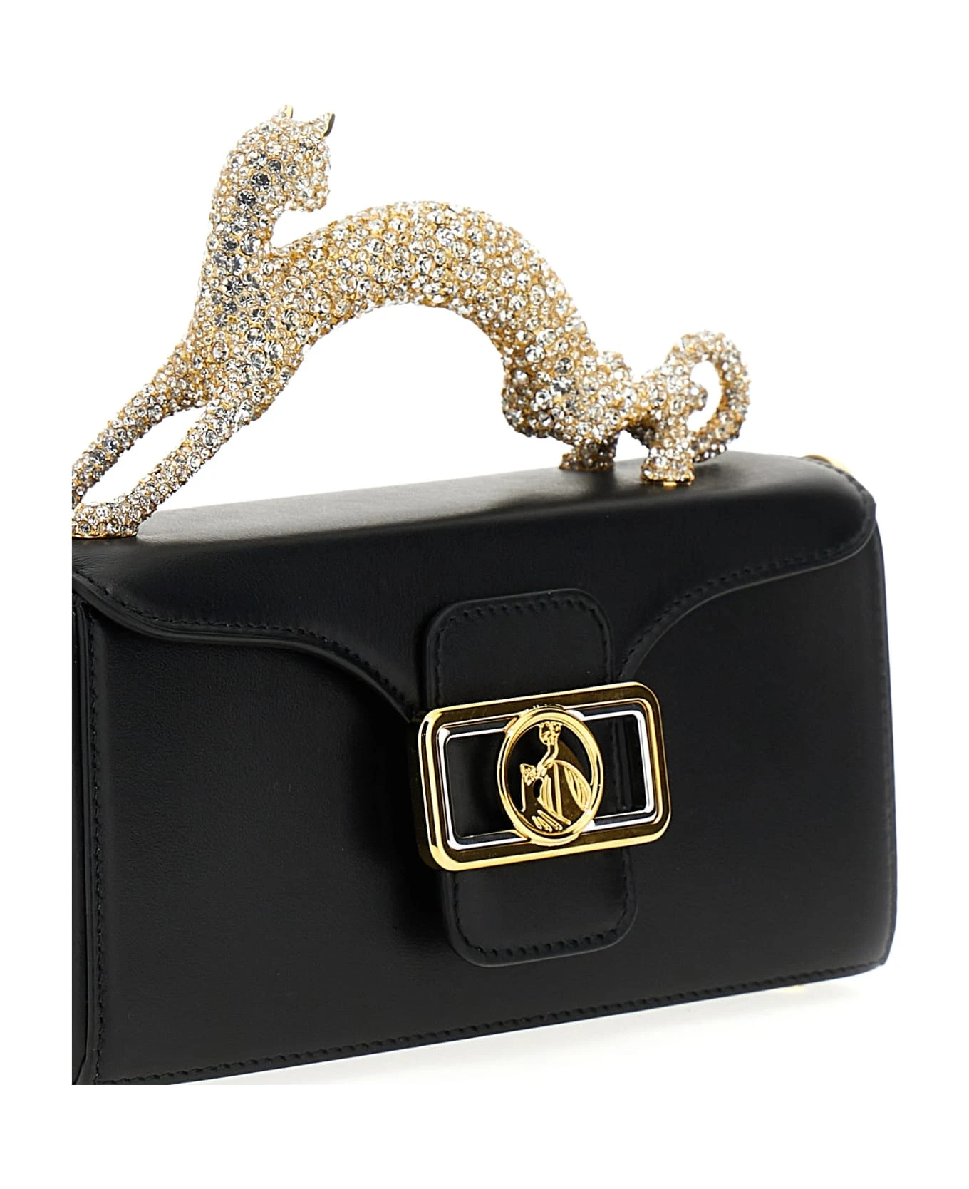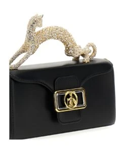 Pencil Cat Nano’ leather handbag with magnetic flap closure, front metal logo, rigid cat-shaped handle with crystals and awith adjustable and removable shoulder strap.