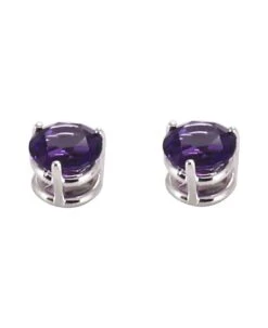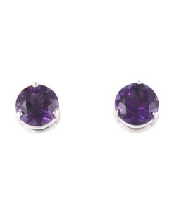 7 mm faceted round Amethyst gemstone stud earrings in prong set.